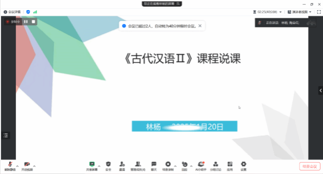 正所谓“千锤百炼始成钢,玉汝于成终有时”,只有经过千次打磨,才能锻成铸才之钢。对于老师来说也是一样,只有不断的打磨自己的课程,才能不断地提高自己的教学水平,丰富个人的理论积累,提升自己的专业素养,保证课堂质量,高效完成教学任务。汉语国际教育专业几位教师:陶金红、林杨、李岚、刘淼于2025年1月20日开展线上磨课活动。