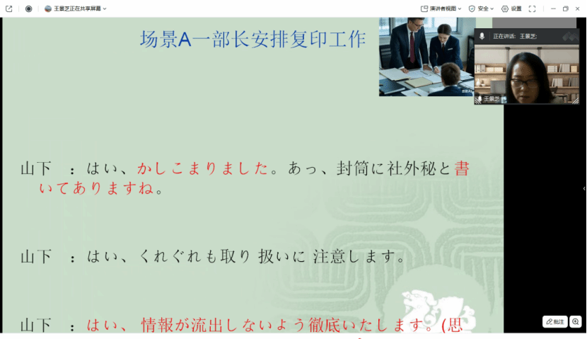2025年1月20日,日语专业成功举办了一场别开生面的线上磨课活动。此次活动旨在提升日语专业教师的教学水平,优化课堂教学质量,为学生提供更优质的日语教育。日语专业的全体教师齐聚一堂,共同举行了此次磨课活动。