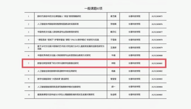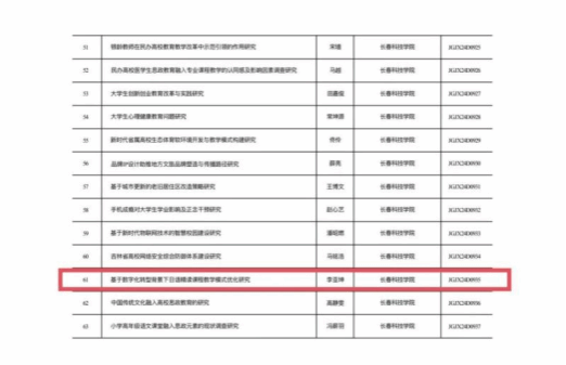 吉林省高等教育科研课题立项是吉林省教育厅为进一步深化教育教学研究,加快建设吉林特色高水平本科教育,全面提高人才培养能力的一项重要举措。为推动学术交流、促进科研成果产出,我院开展多项课题研究申报工作,并成功立项。