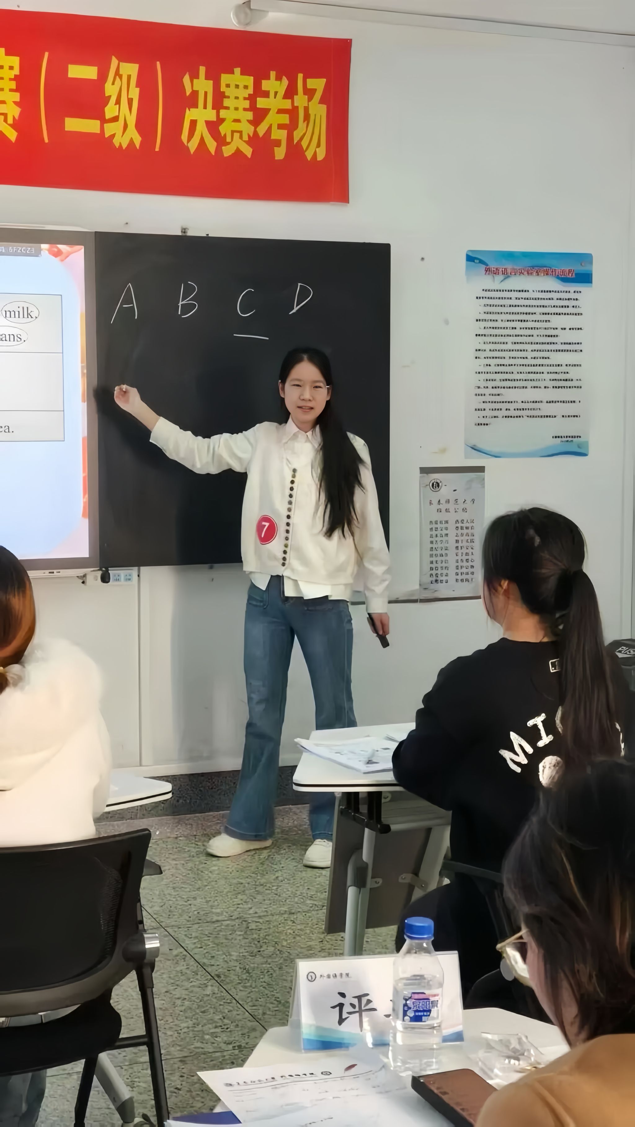 本届比赛要求选手在8分钟片段教学中,全英文展示某一教学环节或活动片段,并同步提交教学设计方案与教学视频。比赛中,我院两位选手沉着自信、表现出色,以流畅的英语口语清晰阐释教学内容,在课堂导入、互动提问与总结提升等环节各展所长,充分展现了扎实的专业功底与独特的教学风格。经过一天激烈角逐,武梓恒同学荣获一级一等奖,詹家妮同学荣获二级二等奖。