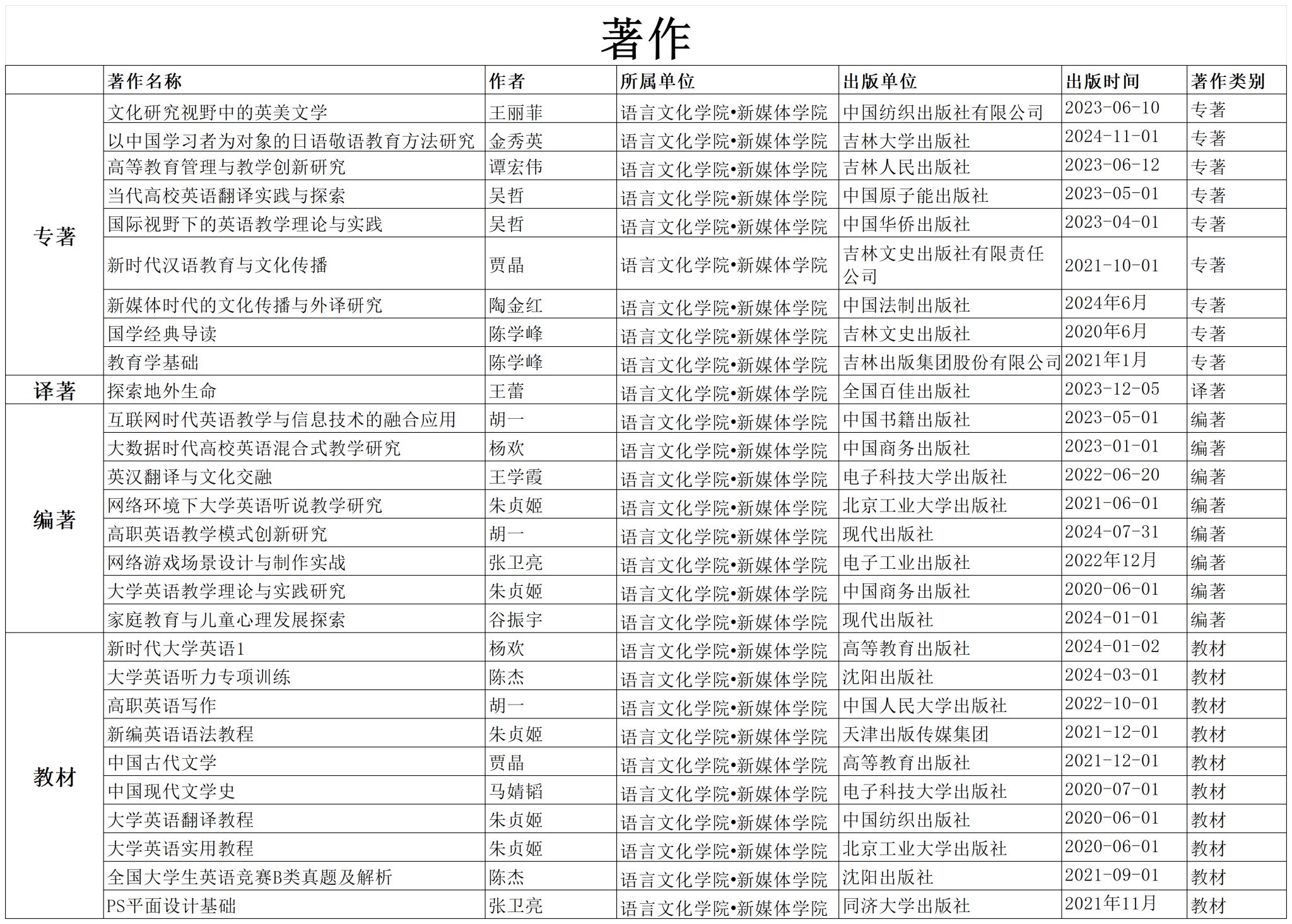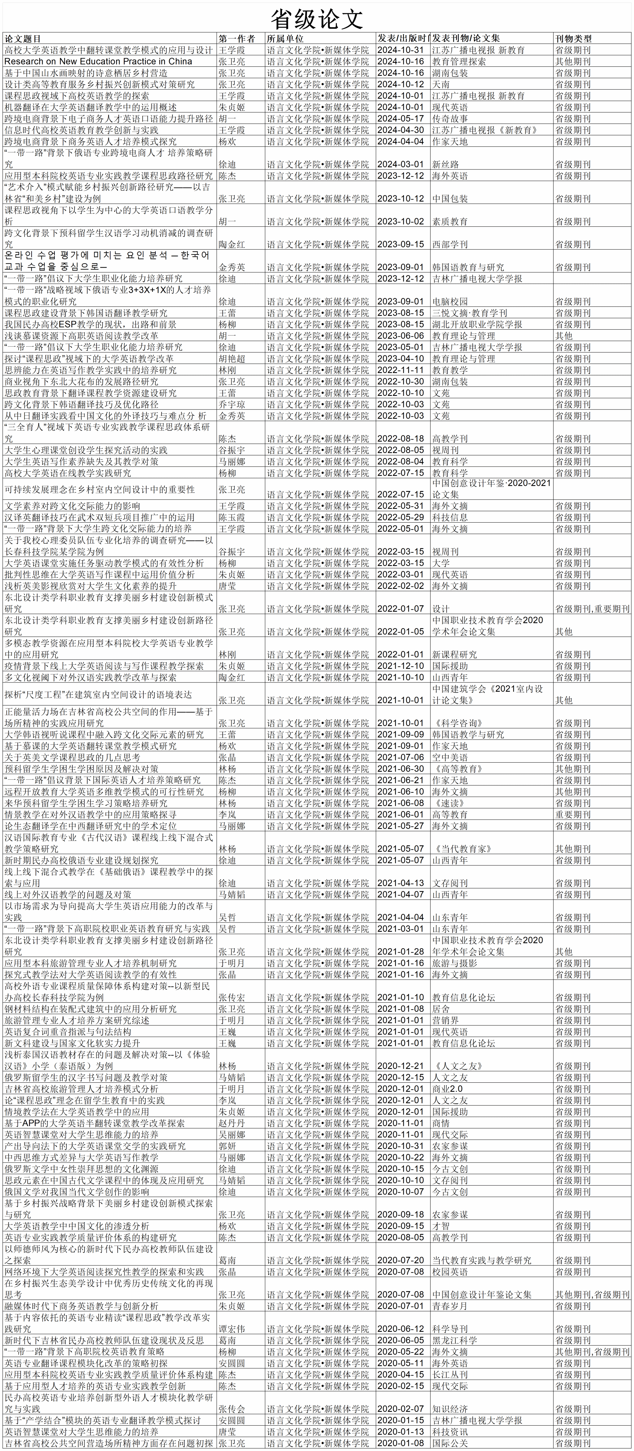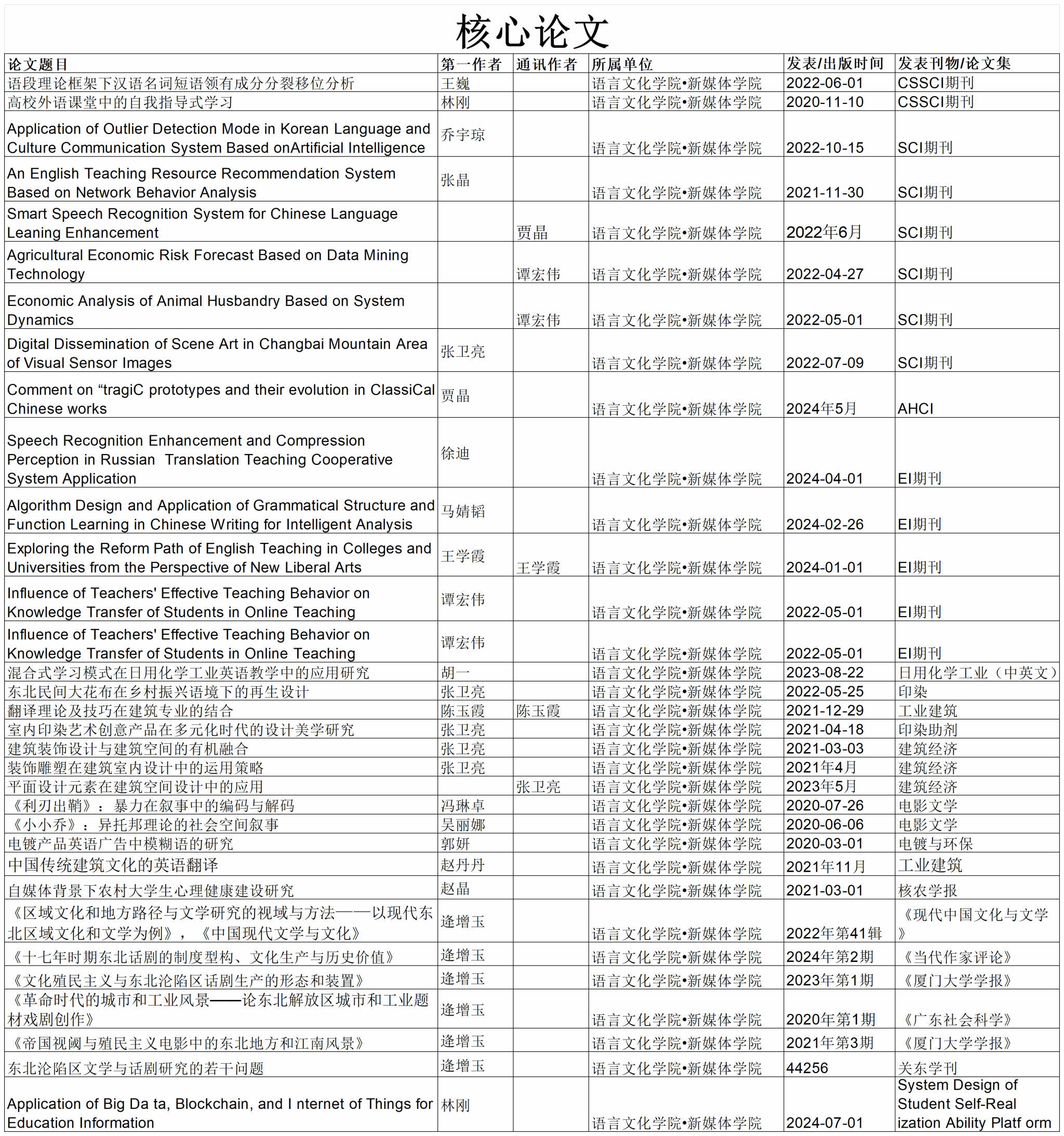 2020年至2024年,语言文化学院•新媒体学院教师共发表论文131篇。其中CSSCI 2篇,SCI期刊6篇(包括通讯作者),AHCI 1篇,EI期刊5篇,中文核心18篇,EI会议1篇。省级论文98篇。