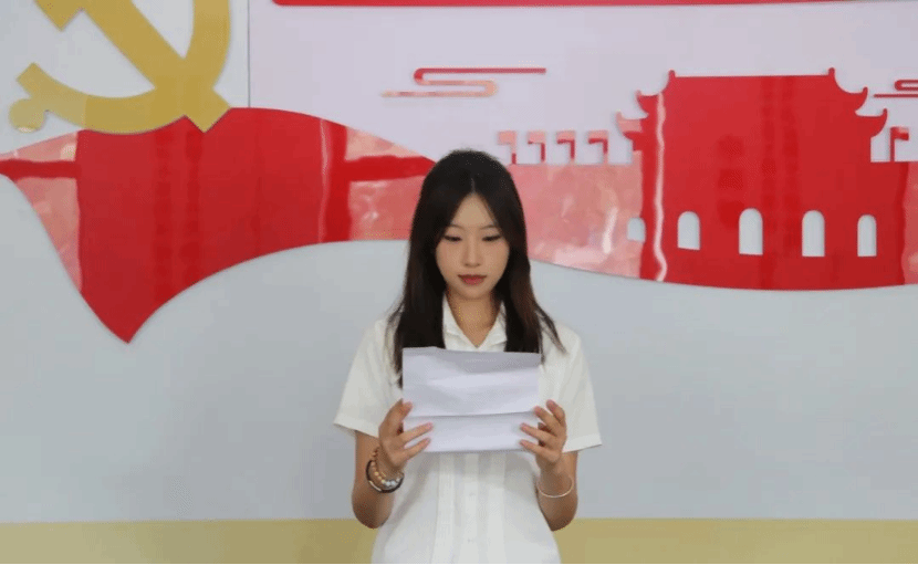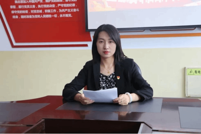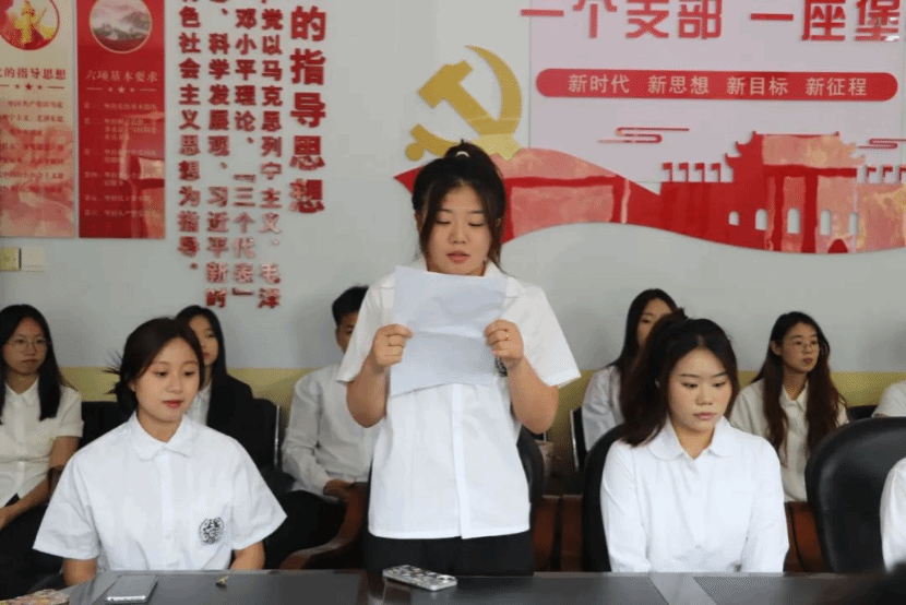 随后,2022级英语2班刘珈作为新党员代表进行发言,她表示将始终坚定理想信念,保持对党的绝对忠诚,坚定不移听党话,跟党走,把红色精神持续发扬好,传承好,积极投身到党和人民的伟大事业中,以实际行动为党和人民的事业贡献力量。