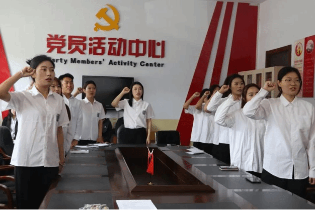 面向中国共产党党旗,新党员举起右手,庄严宣誓,铿锵有力的誓言展现了新党员坚定不移的理想信念,表达了新党员对党的赤诚之心和崇高信仰。