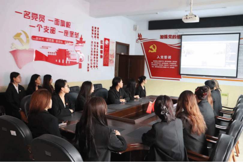 学生党员代表刘珈详细解读了中华民族共同体意识的丰富内涵和重大意义。从历史的长河中追溯各民族共同创造灿烂中华文化的历程,到现实中各民族携手共进,共同为国家建设拼搏奋斗的生动实例,让学生党员们深刻认识到中华民族共同体是一个命运相连的有机整体。