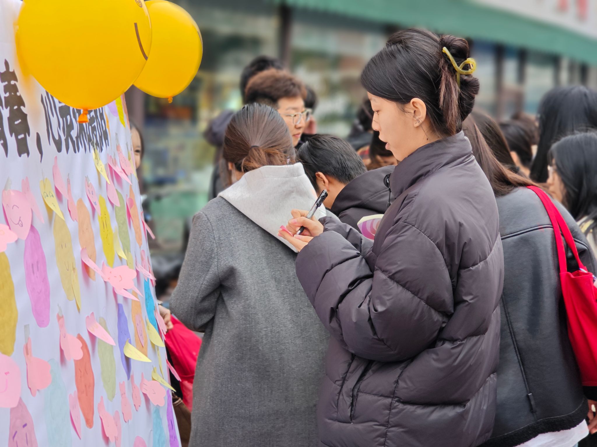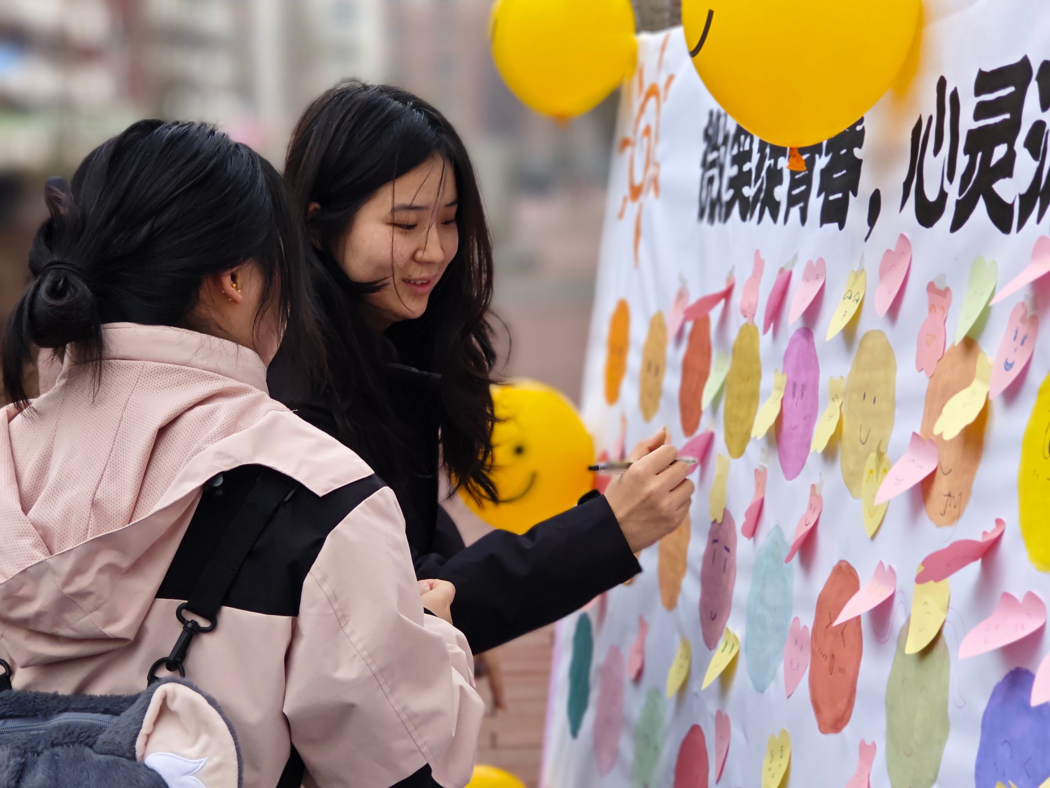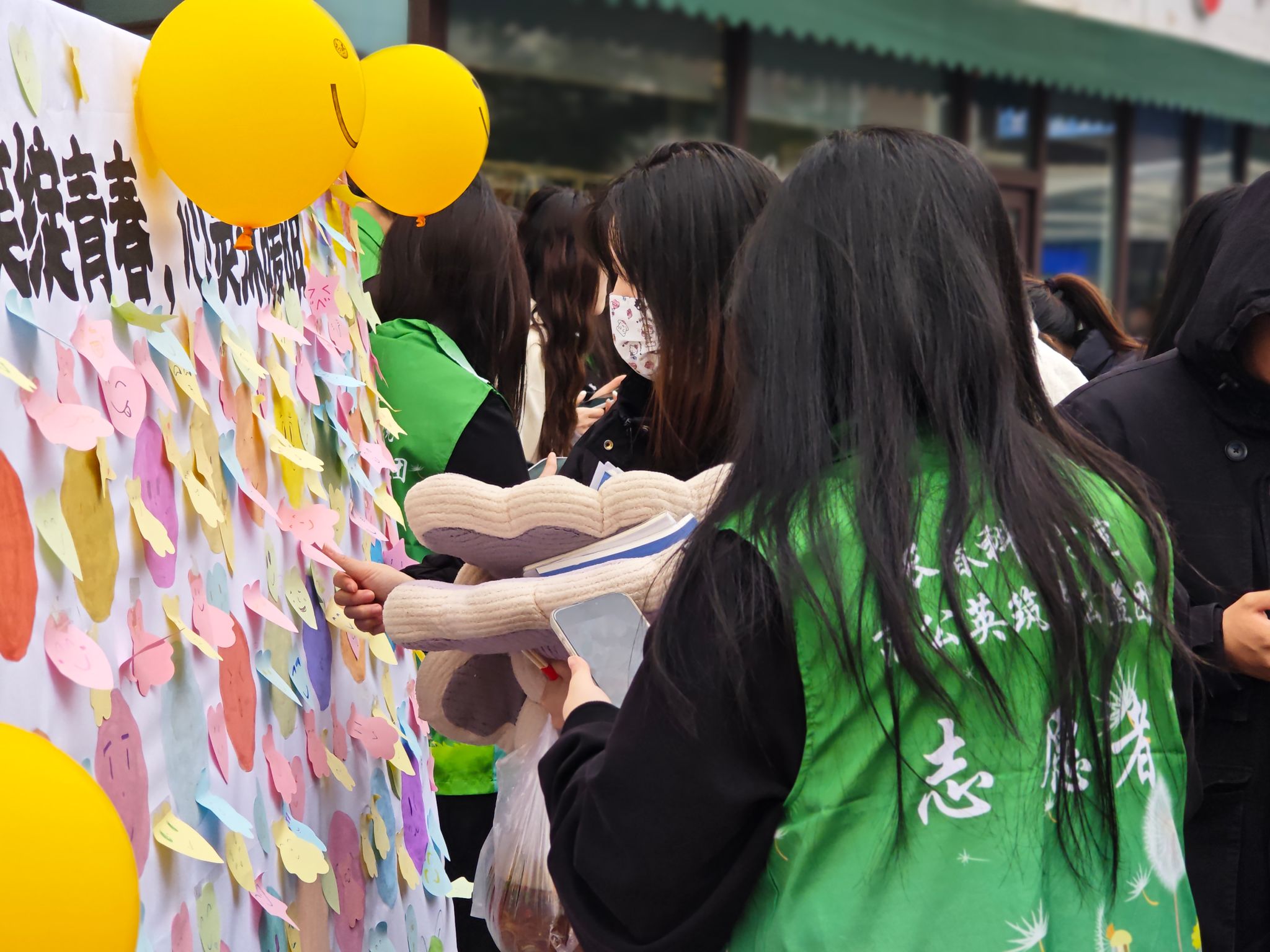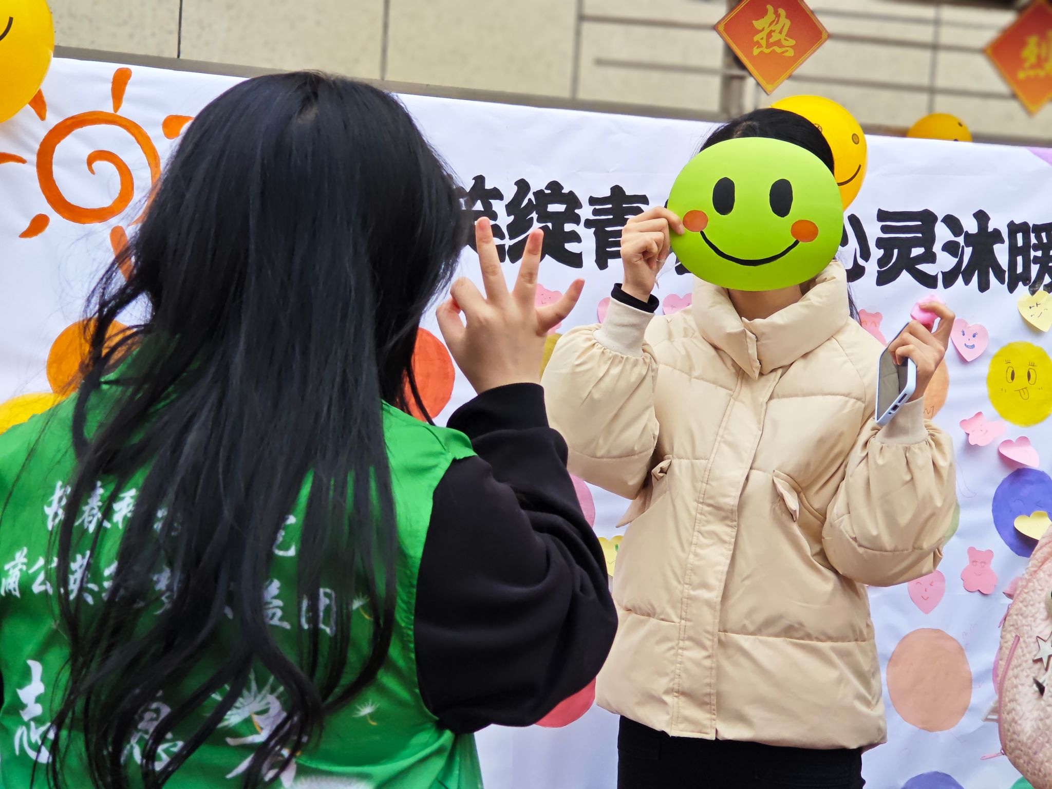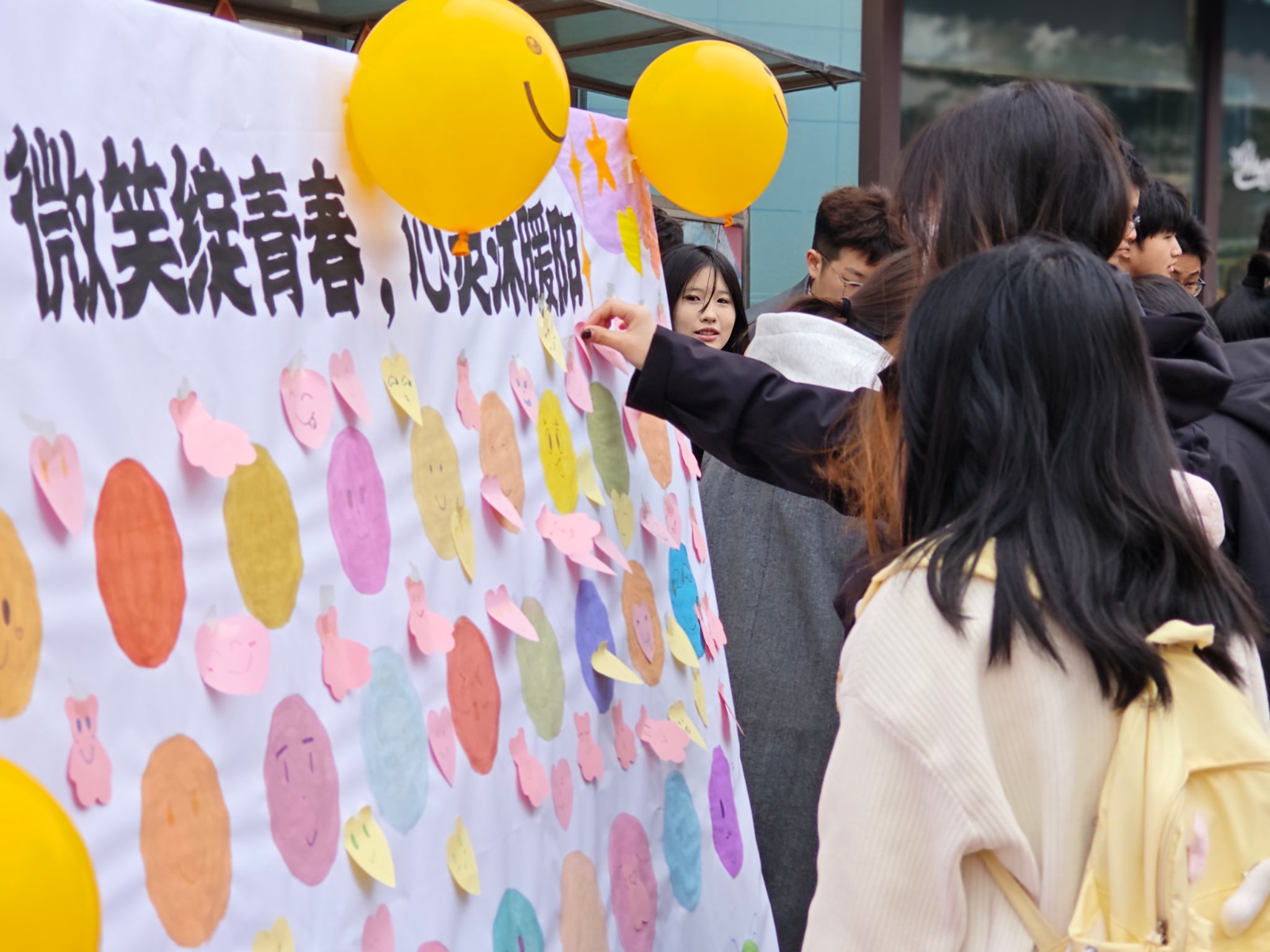 为了提升大学生心理健康水平,宣传心理健康知识,营造积极健康的校园氛围。2025年4月2日8点,语言文化学院·新媒体学院蒲公英筑梦公益团于食堂西侧开展“微笑绽青春,心灵沐暖阳”心理健康主题特色活动。