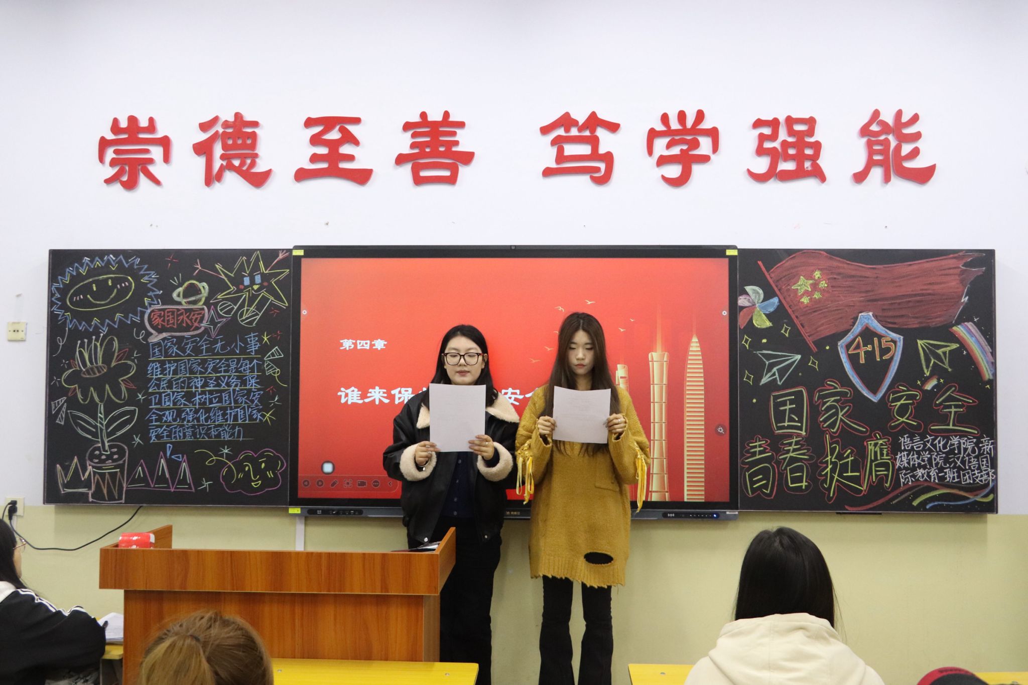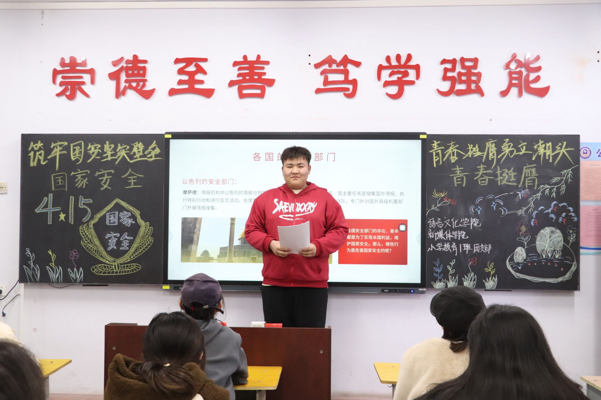 为深入贯彻落实总体国家安全观,提升青年学子国家安全意识,2025年4月15日18:20,语言文化学院、新媒体学院以班级为单位在第一教学楼开展"筑牢国安坚实壁垒,青春挺膺勇立潮头"主题团会,2024级全体学生参加。