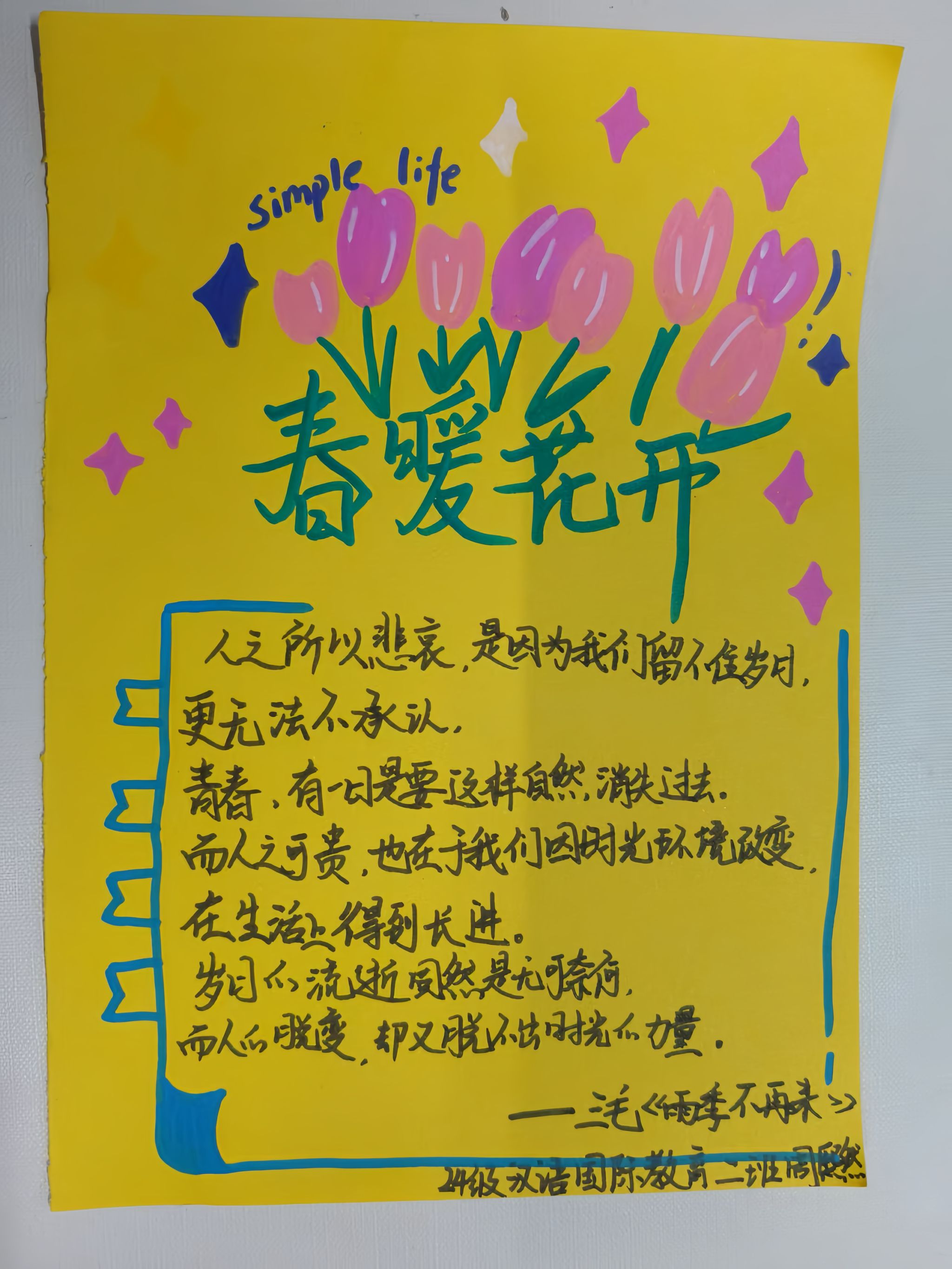 5月26日下午,语言文化学院、新媒体学院于第二教学楼开展“锦句撷英,书香漫谈”贺卡制作活动,本次活动以“书海拾珍句,笺中绘雅情”为主题,我院学生积极参与,最终评选出六件作品。