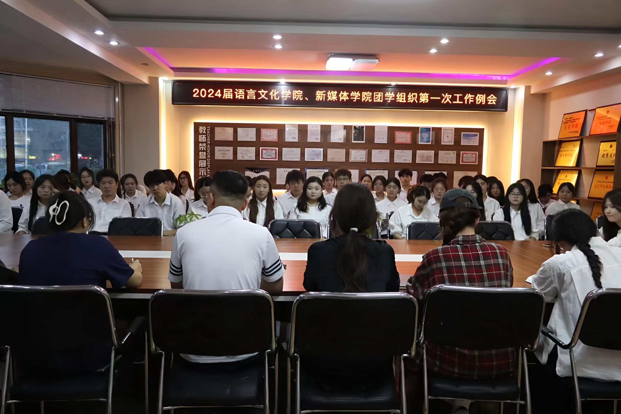 6月29日晚,语言文化学院、新媒体学院于1217会议室召开2024届团学组织第一次工作例会,团学组织全体成员参加。