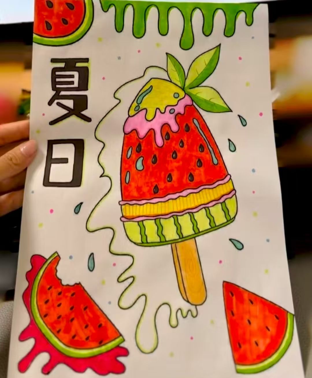 一面捕捉夏夜荷塘“月光镀银、流萤共舞”的静谧生机,用数字叠色拆解光影魔法;一面把西瓜冰棒融成夏日符号,让色彩流淌出甜津津的童趣。一动一静皆在证明:自然不仅可以绘星河流转,还能装下舌尖上的夏天。