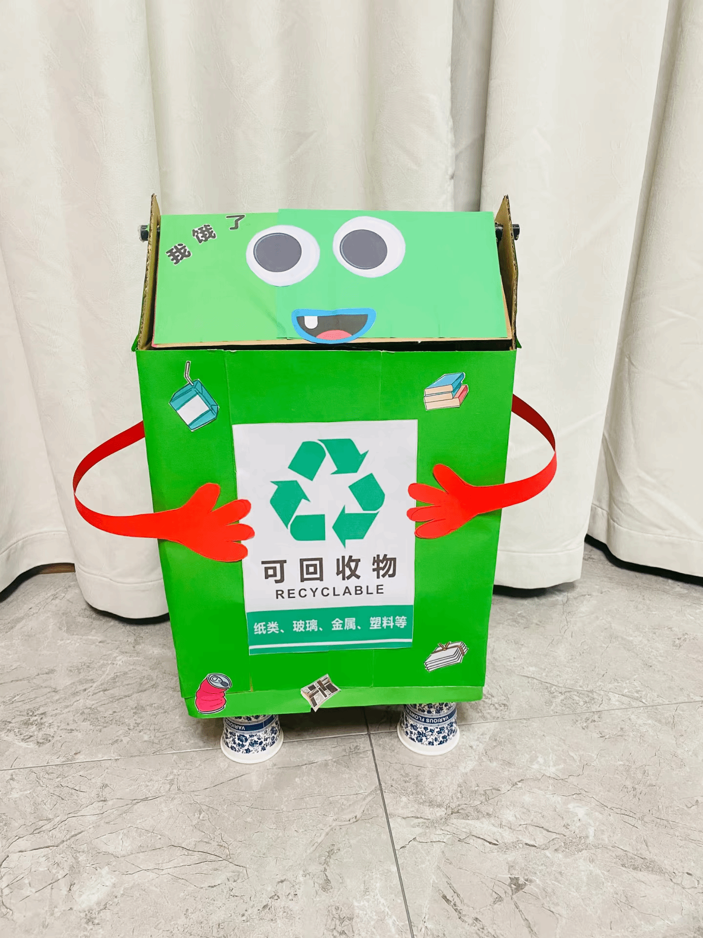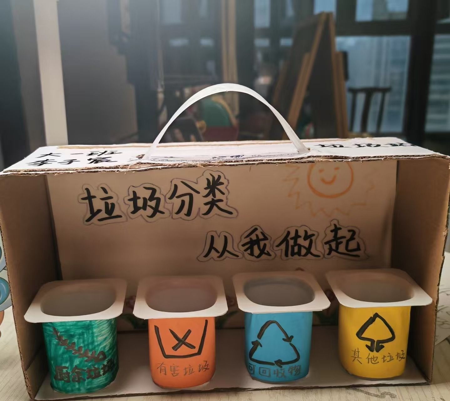 巧用纸盒等废旧材料,在压缩制作成本的同时,积极倡导“垃圾入箱、垃圾分类”的绿色行动,生动传递“资源循环”的理念与环保意识,让环保理念融入日常实践的每一个细节。
