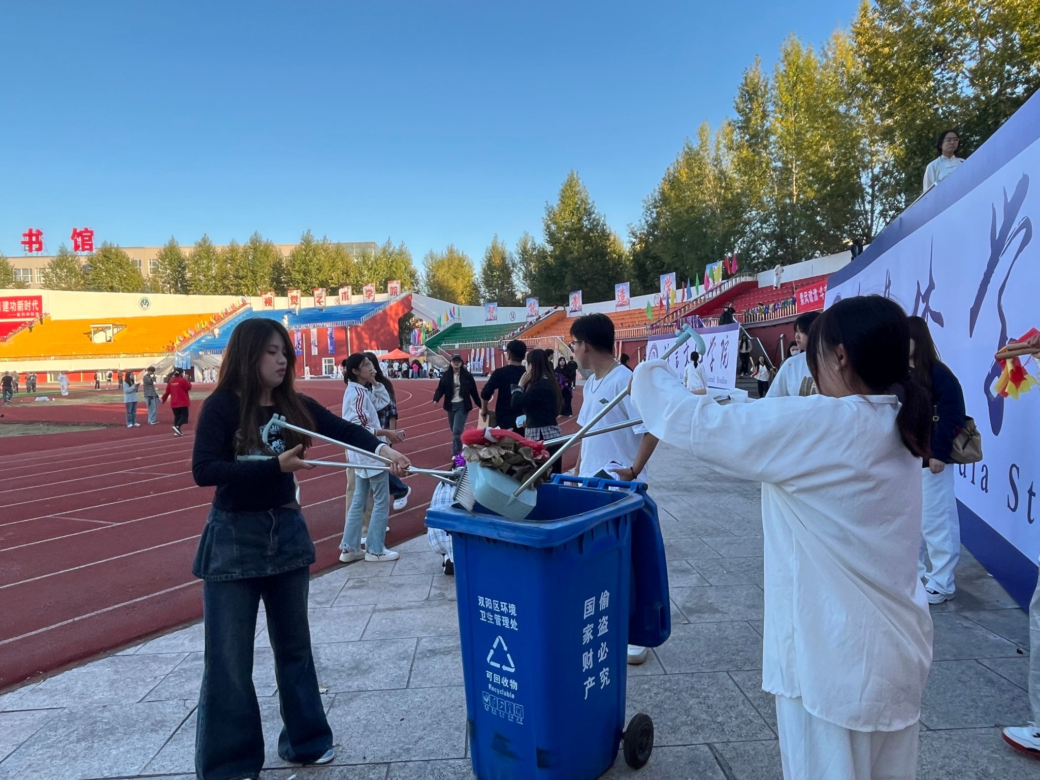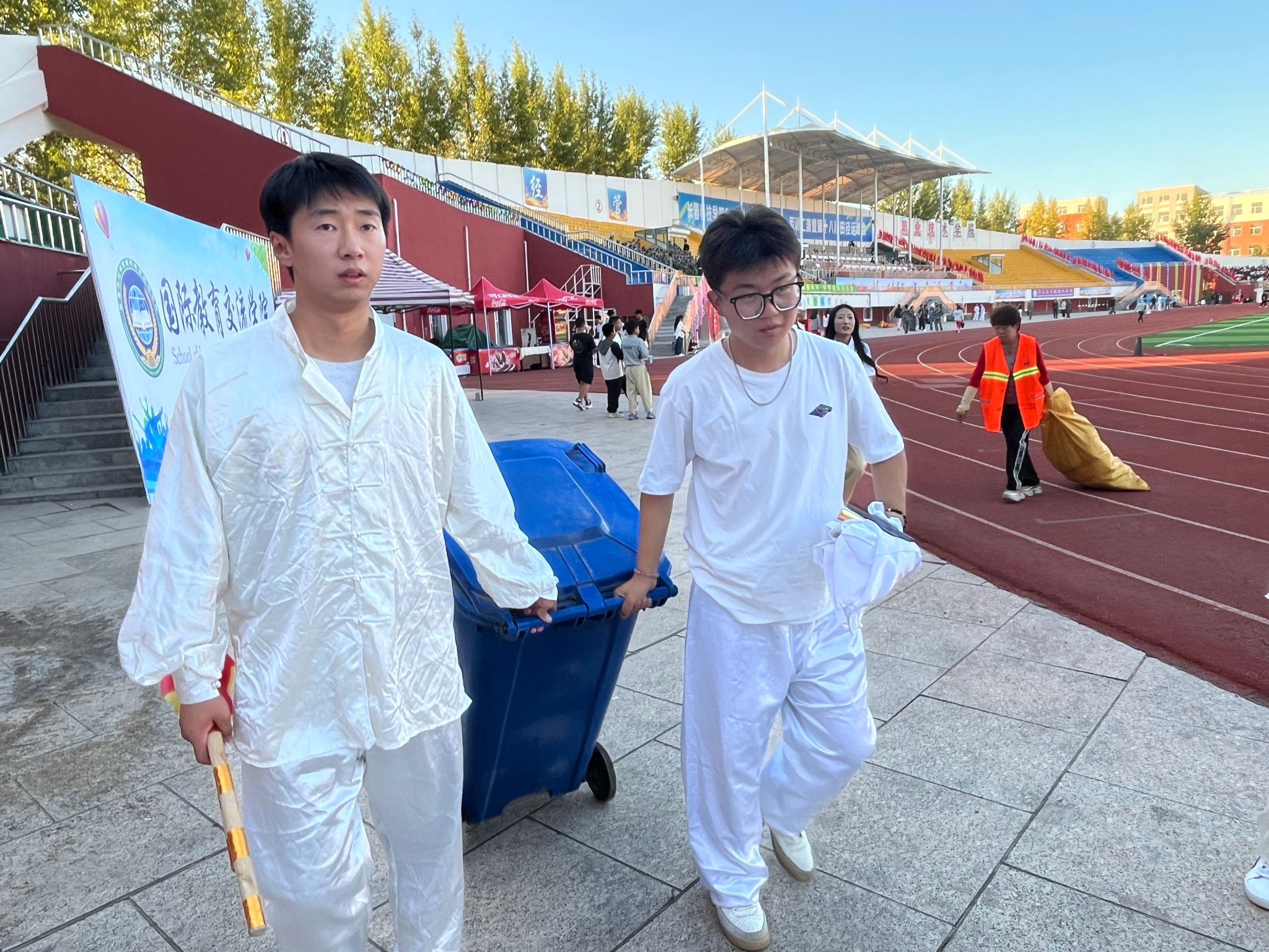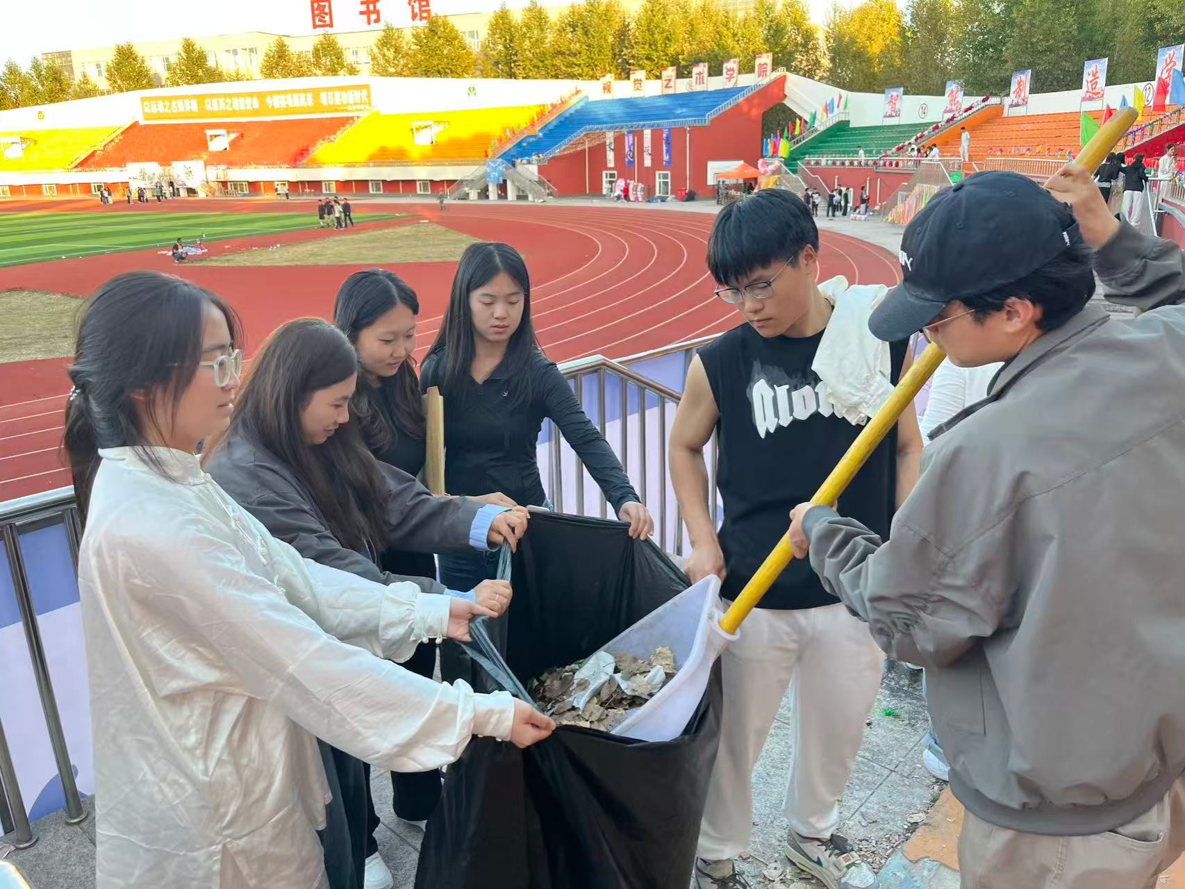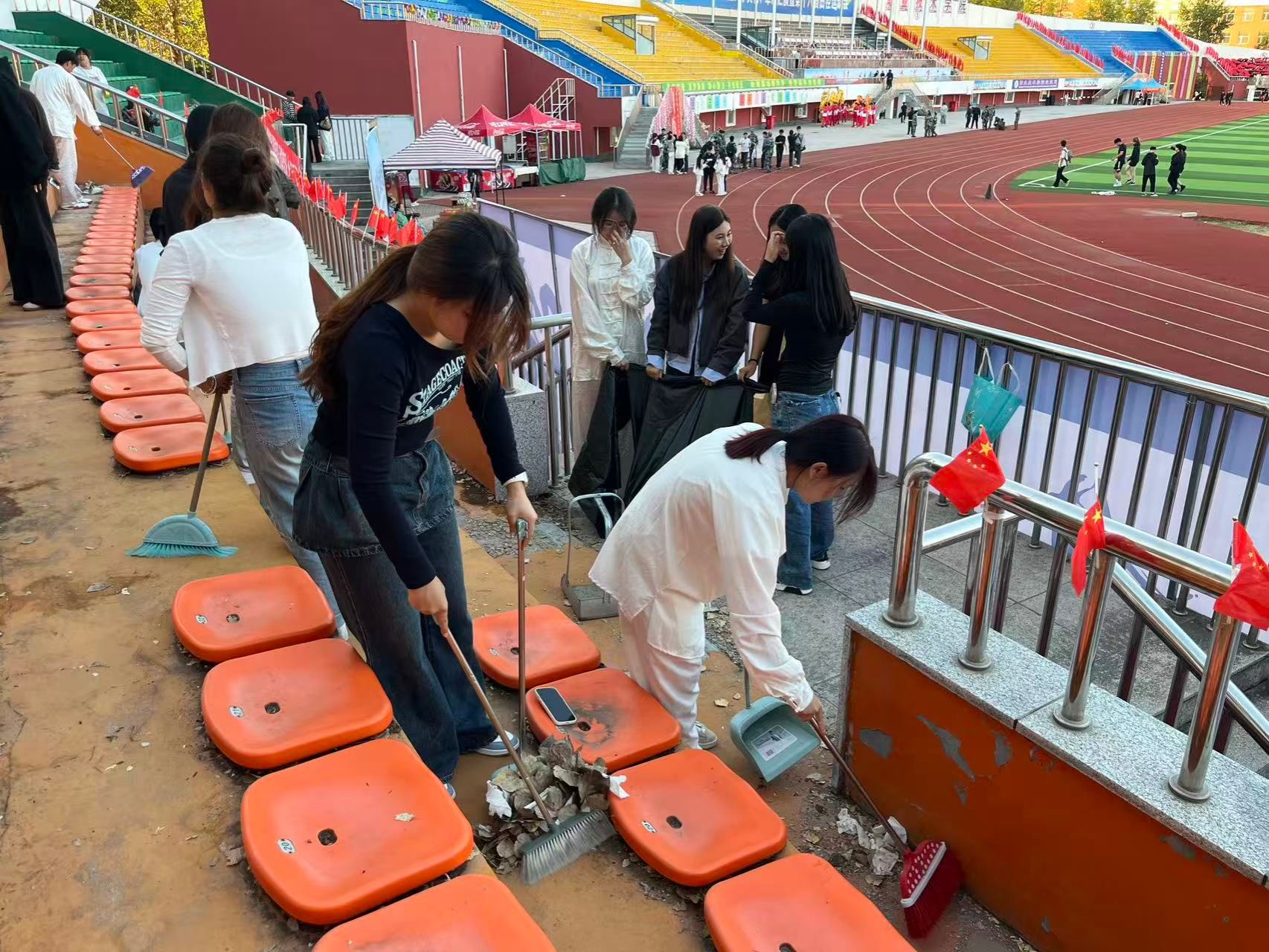 为营造整洁舒适的观赛环境,助力学校运动会圆满成功,9月21日下午,语言文化学院、新媒体学院开展“我为同学做实事”卫生服务活动,组织同学们于运动场观众席区域进行集中清扫。