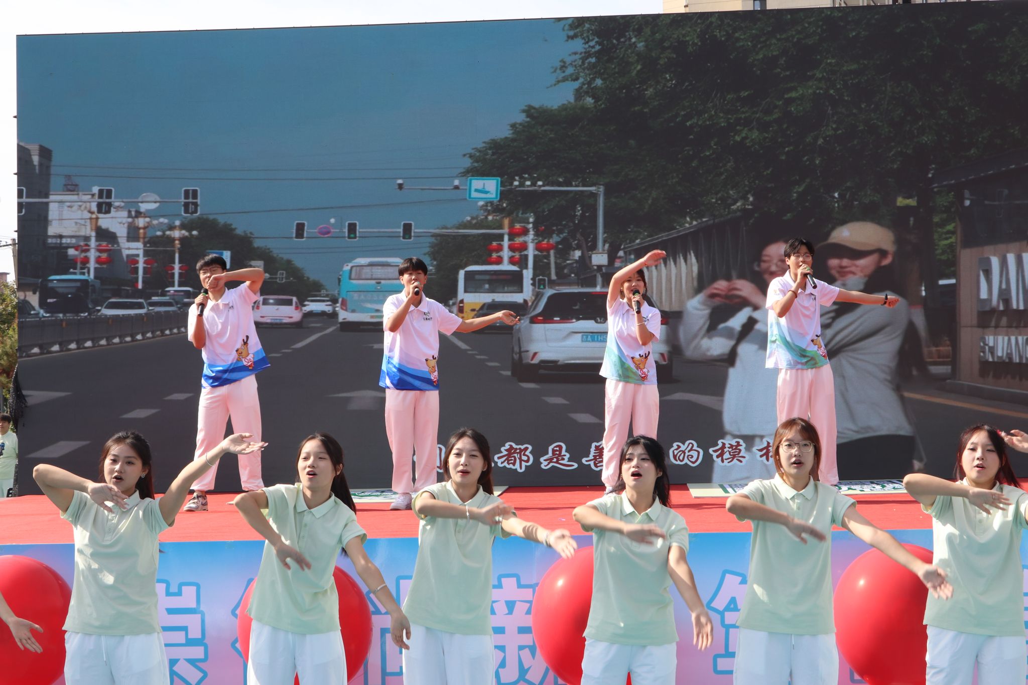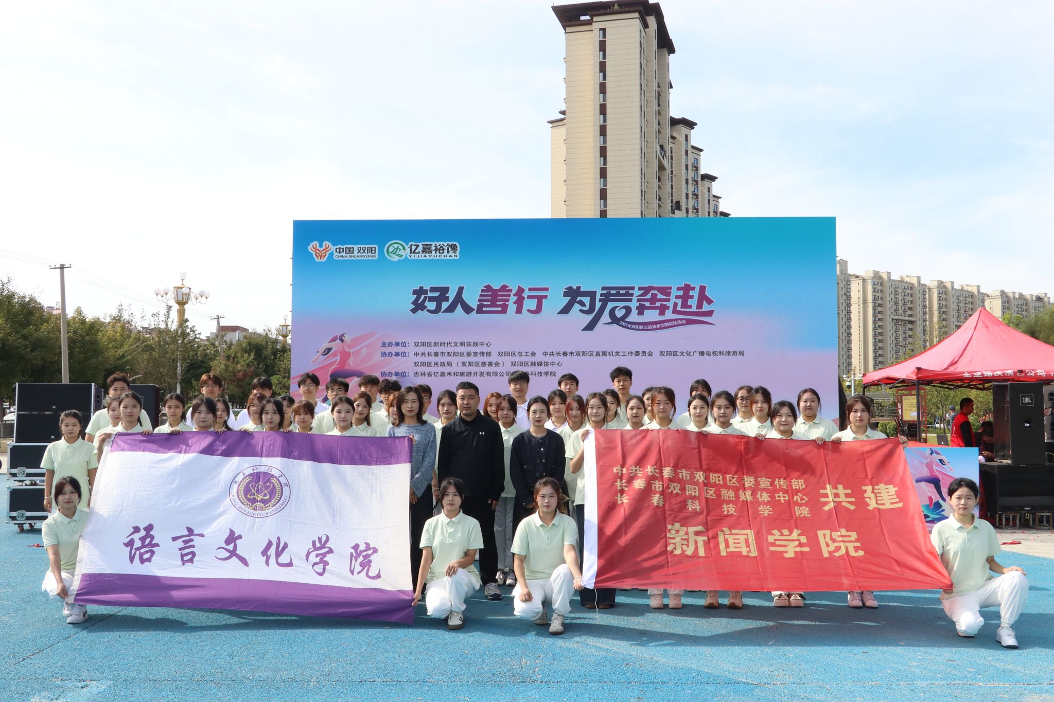 2025年9月19日,双阳区“好人善行,为爱奔赴”公益徒步文明实践活动在博山社区广场隆重举行。我校作为与双阳区委宣传部共建新闻学院的合作高校,积极参与此次活动,并选派语言文化学院、新媒体学院学生代表在现场精彩演绎主题歌曲《文明双阳》,用青春之声唱响文明旋律,传递公益力量。