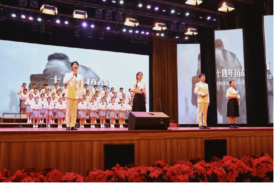 舞台上,同学们精神饱满、意气风发,为大家带来了精彩绝伦的《吾以青春庆华诞》朗诵表演。他们身着整齐的服装,精神抖擞地站在舞台中央。随着音乐的缓缓响起,他们用富有感染力的声音,时而激昂澎湃,时而深情婉转,将对祖国的热爱与赞美之情抒发得淋漓尽致。