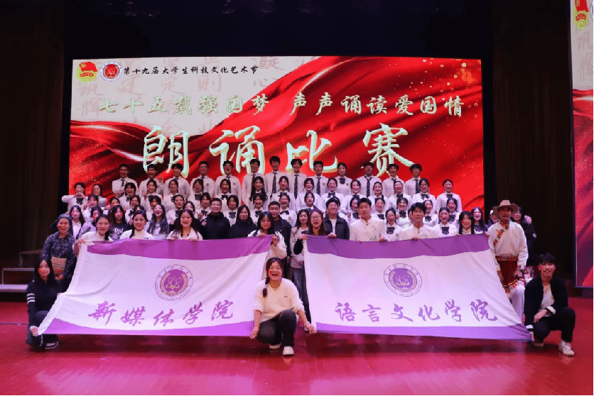语言文化学院·新媒体学院卫冕第十九届大学生科技文化艺术节“七十五载强国梦,声声诵读爱国情”朗诵大赛冠军