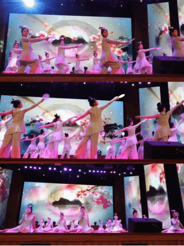 “欲把西湖比西子,淡妆浓抹总相宜。”在民间民族舞《淡妆浓抹总相宜》中,我院舞者手执团扇轻舞,步态摇曳生姿,以优雅的动作为观众们带来了富有民族特色的舞蹈,她们行云流水般的优雅舞姿,塑造出了独立于天地之间的江南女子形象,她们将千年的文化底蕴,融会每一个流转的指尖与足尖,营造出了一幅婀娜多姿,风姿绰约的江南美好图景。