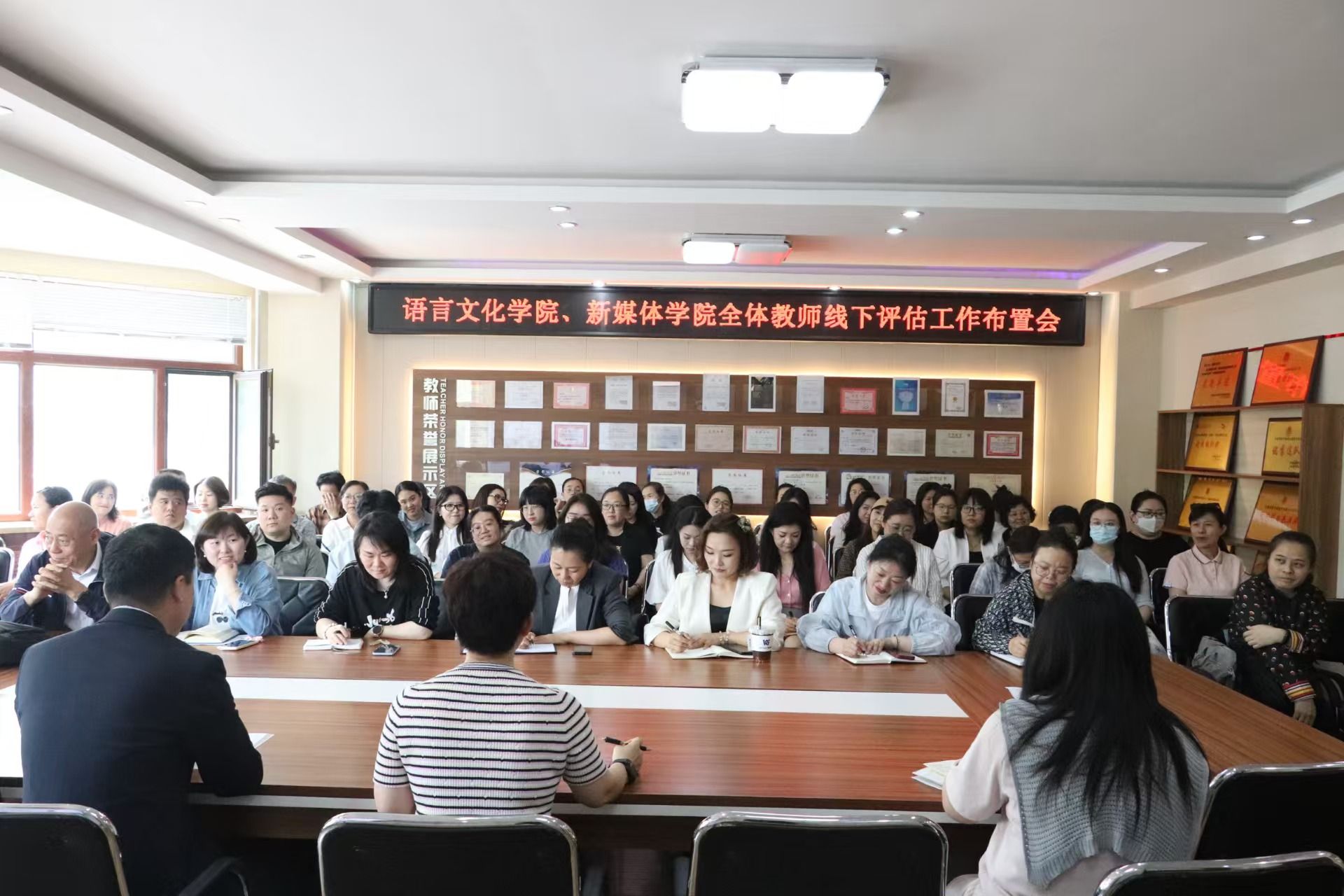 5月29日中午,语言文化学院、新媒体学院于第一教学楼217会议室召开全体教师线下评估工作布置会,语言文化学院、新媒体学院陈院长、党总支副书记张贺亮及全体教师参会。