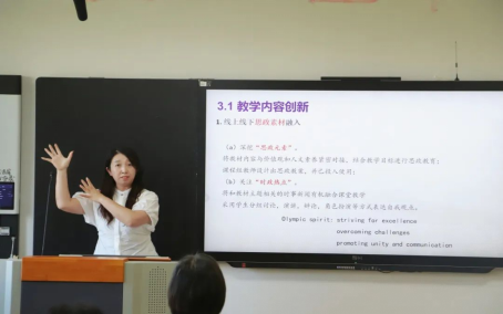 以说促教,公共外语教研部吴哲老师和杨柳老师分别开展了授课环节,两位老师以生动的课堂展示,从多维度精彩阐述了如何结合专业知识生动融入思政内容,与在座的教师们分享了她们的教学实践经验和成功案例,为学院的老师们提供了可借鉴的宝贵经验和思路。全体教师通过观摩两位老师的教学示范,对教学内容、教学方法、教学效果等内容都有了深刻的感悟。此次培训促进了教师相互交流,提高教师队伍的专业素养和课堂质量,为新一轮本科教育教学审核评估工作的顺利开展打下了良好的基础。