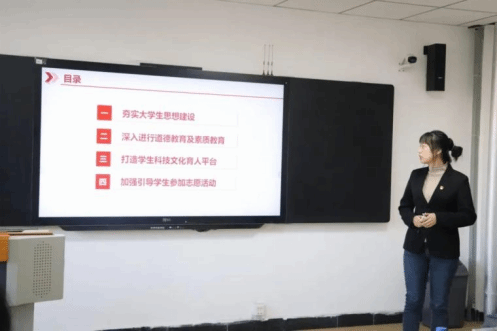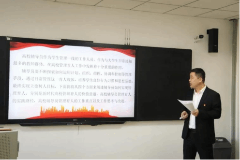 党总支副书记张贺亮与辅导员老师们重点围绕学生思想政治教育以及所带班级的具体情况,深入阐述了他们在育人实践中的思考与作为,分享了育人的观点、举措、经验与成效,充分展现了在学生成长道路上的引领作用与责任担当。