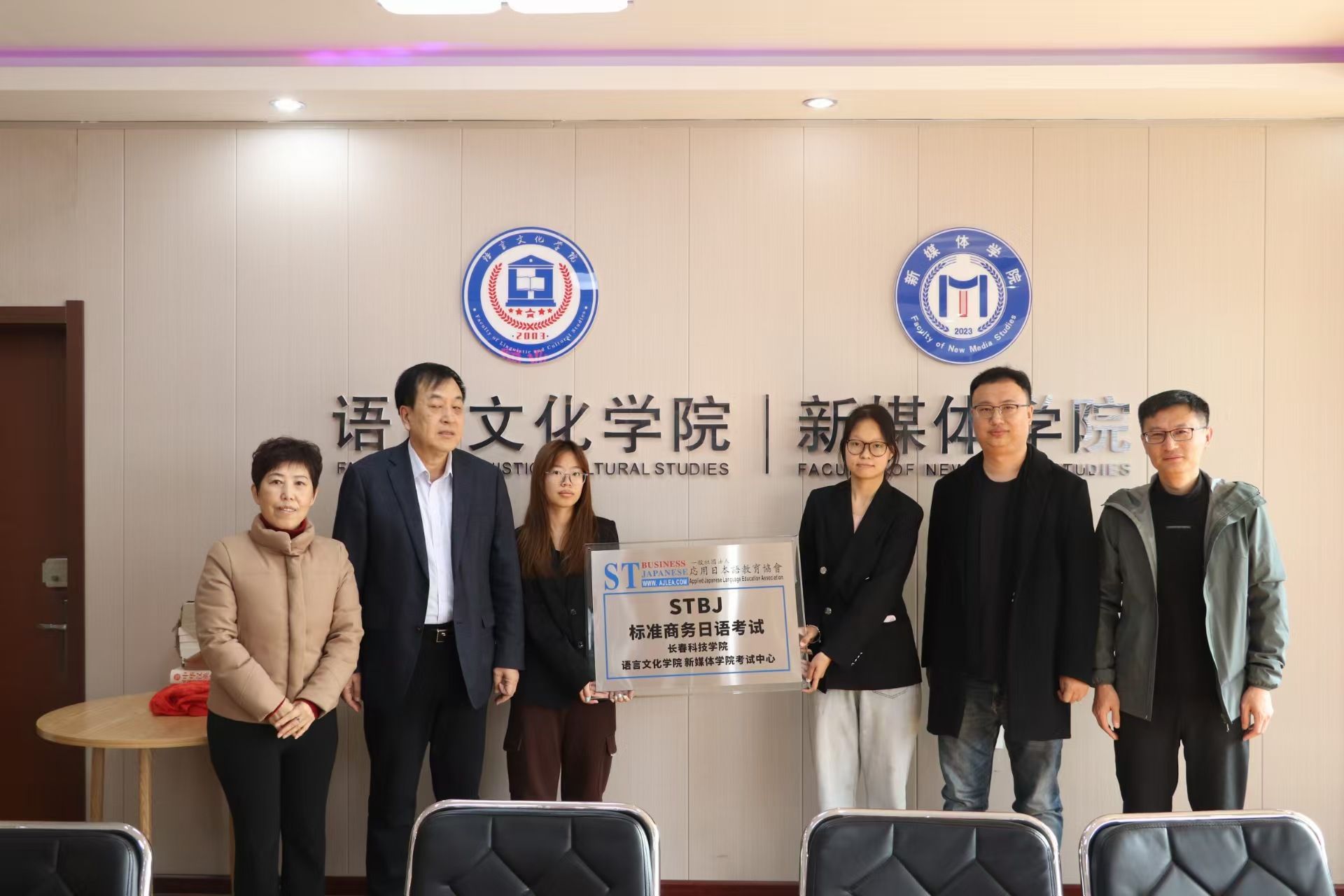 2025年4月3日8:00,长春科技学院与亚历克斯国际语言中心共同举办日本标准商务日语(STBJ)考试吉林省授权考点揭牌仪式。长春科技学院副校长张代治、教务处处长唐敬仙、亚历克斯国际语言中心STBJ考试负责人谭诚主任、我院领导班子及师生代表出席活动。