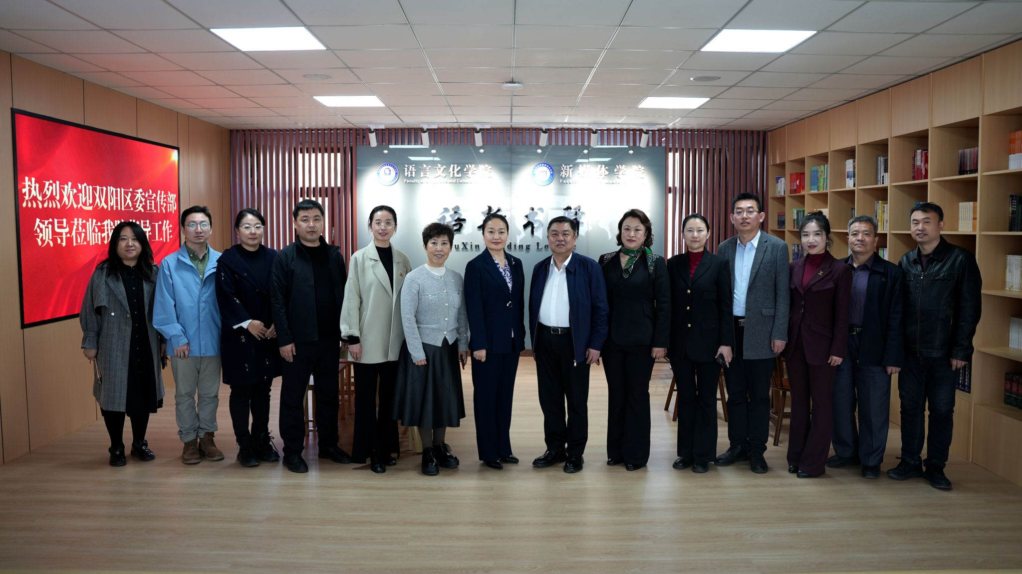 在交流环节,双阳区委宣传部副部长刘鑫宇建议,双方可以在深化主题宣传和融媒体产品创作方面进行深度合作。网络与新媒体专业系主任邹昆仑简要介绍了专业“坊赛训岗”一体化的人才培养模式。会后,在陈院长的带领下,与会领导参观了学院的短视频制作工作坊、语言文字推广基地、语新书驿阅读空间等。