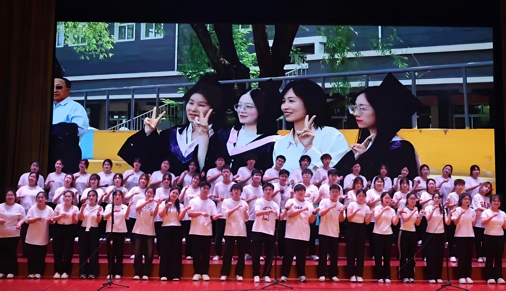 青春是一幅斑斓的画卷,毕业恰似那最动人的落款印章。我院六位老师联袂献唱《声载师恩·语寄前程》。当温暖深情的师者之声回荡礼堂,每一颗心都泛起感动的涟漪,为这场盛会烙下永不褪色的印记。