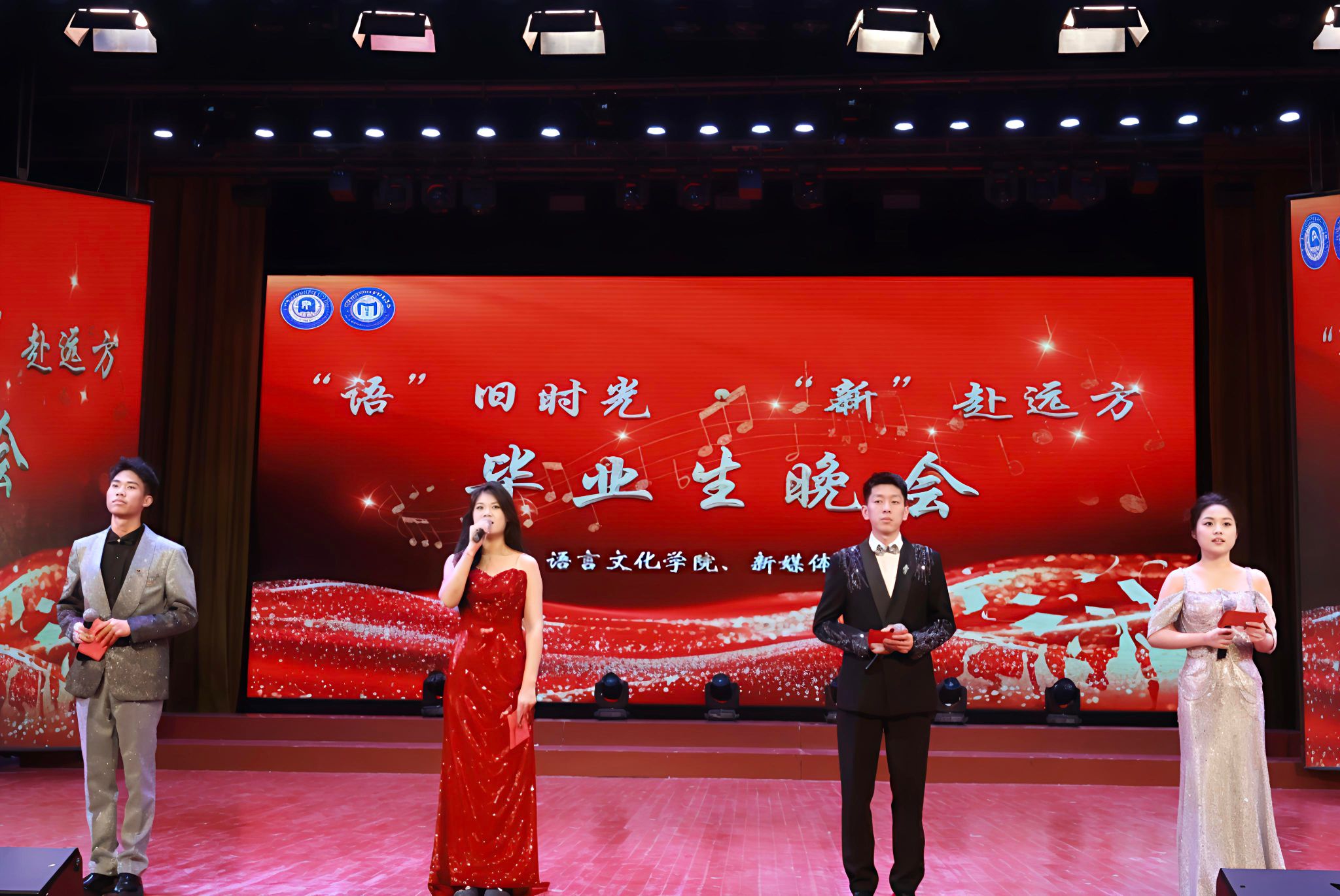 语言文化学院、新媒体学院2025届毕业生晚会于6月19日17:00在东鳌学术论坛国际会议中心隆重举行。长春科技学院副校长张代治、党委副书记宋学山、团委书记孙旭、学生处国防教育科科长曾建 、学生处思想教育科科长韩卓育、语言文化学院、新媒体学院副院长王巍、党总支副书记张贺亮、各专业主任以及部分教师出席晚会。