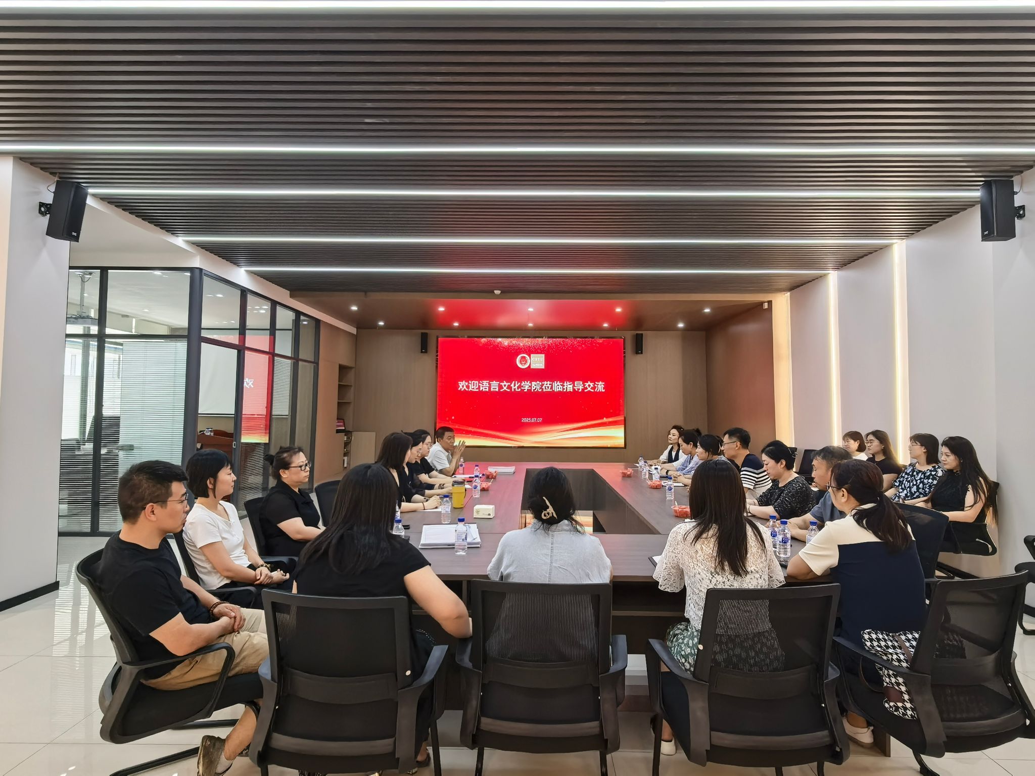 7月7日,语言文化学院教学团队在院长唐敬仙教授带领下赴视觉艺术学院进行专题研学交流。此次跨院系教研活动由两院院长共同策划,语言文化学院副院长王巍、各专业负责人及骨干教师全程参与,旨在探索新文科建设背景下的教学模式创新。