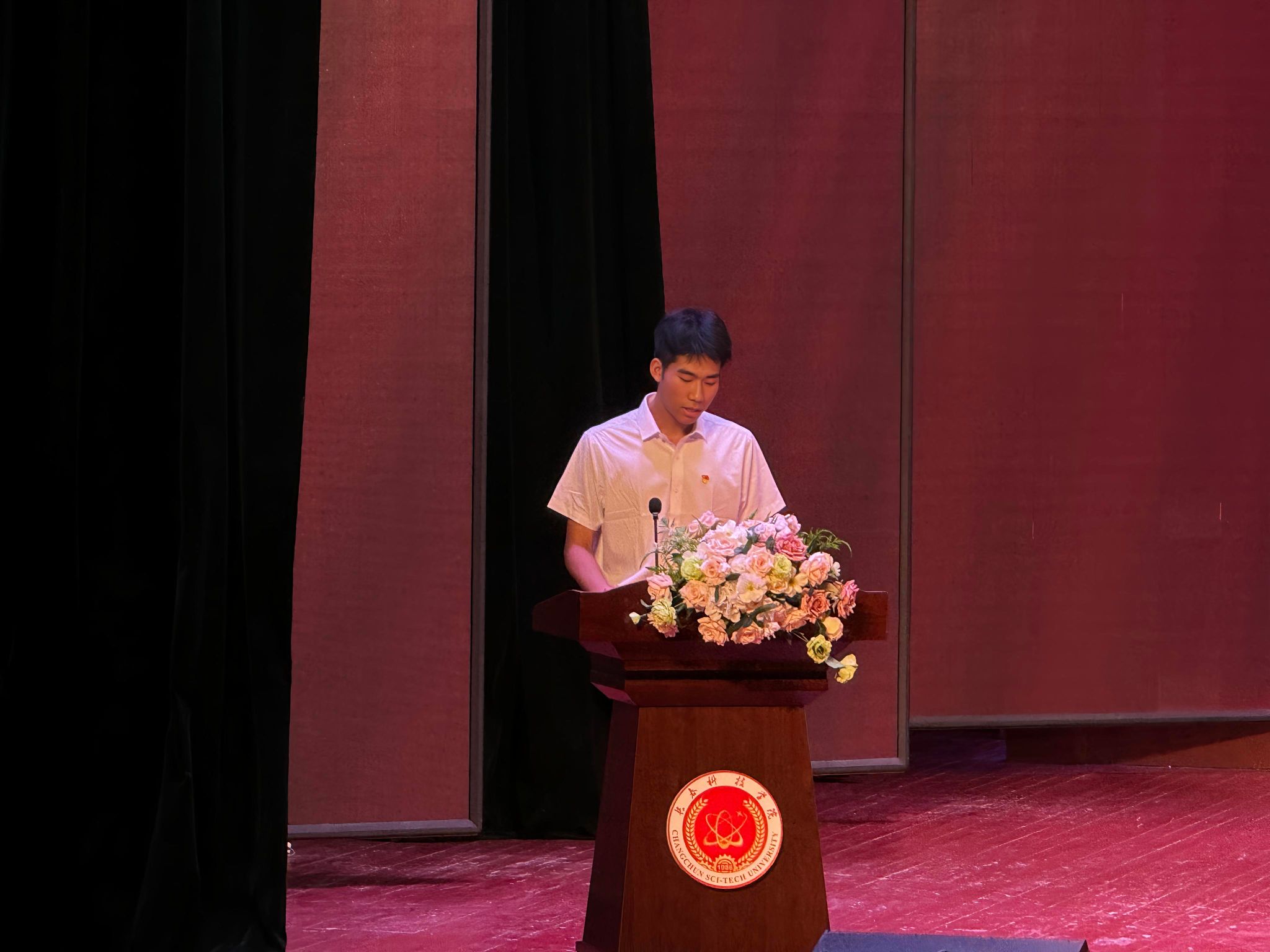 2022级英语一班姚景阔同学作为新党员代表上台发言。他结合自身成长经历,表达了坚定理想信念、永葆党员本色的决心,展现了新时代青年党员的责任担当。