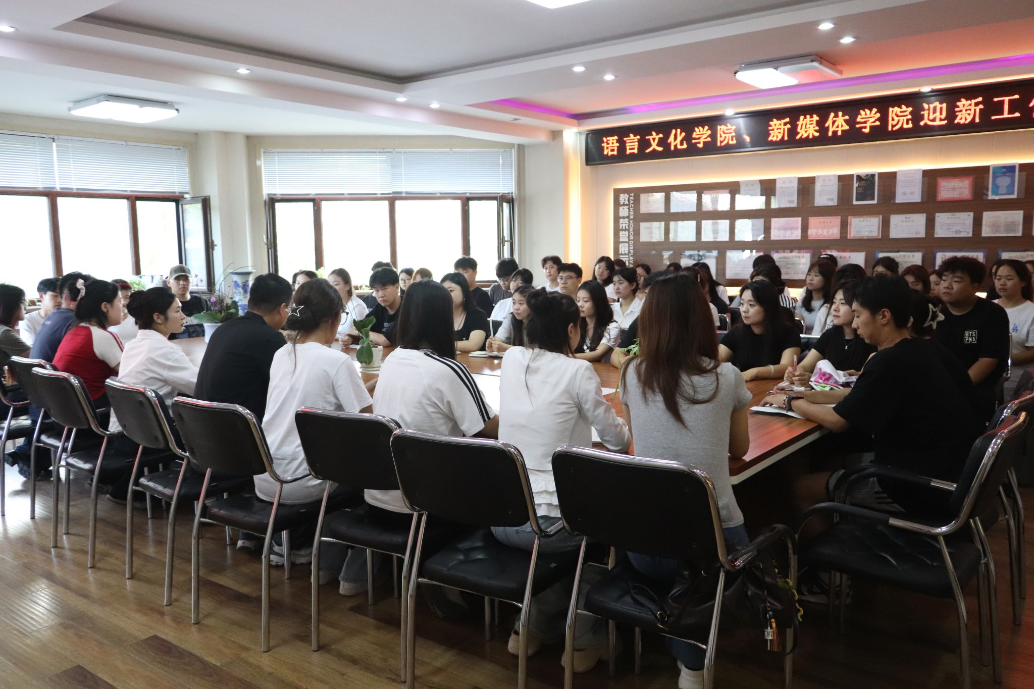 8月26日下午,语言文化学院、新媒体学院在1217会议室召开迎新工作布置会。党总支副书记张贺亮、分团委书记张凯旋以及团学组织全体成员参加会议。会议由张凯旋主持。