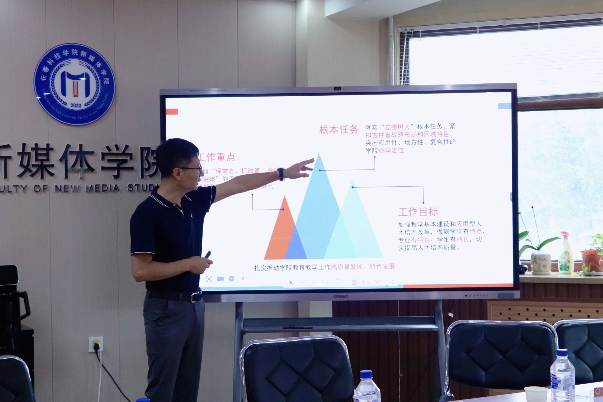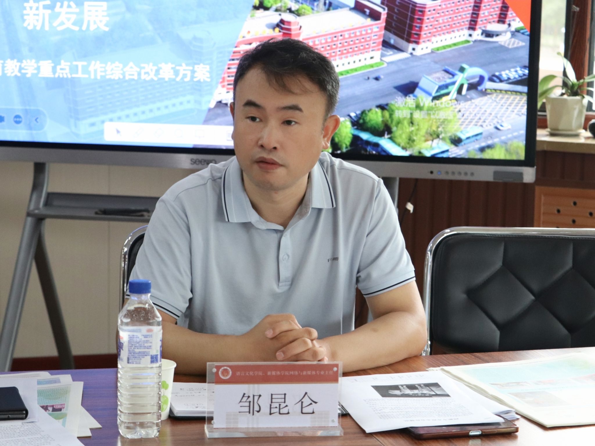 在听取学院汇报后,张代治副校长对我院各项工作成效予以充分肯定。他表示,语言文化学院、新媒体学院在实习基地建设、校企协同育人、心理健康体系建设及教学改革创新等方面举措扎实、成效显著,体现了学院班子和教师队伍的高度责任感与务实作风。同时,他也提出几点指导意见:一是要进一步强化教学质量监控与反馈机制,推动教育评价改革落地见效;二是要深化产教融合,拓展与行业龙头企业合作,增强学生就业竞争力;三是要注重培育教学成果,总结推广改革经验,形成可复制、可借鉴的育人模式。