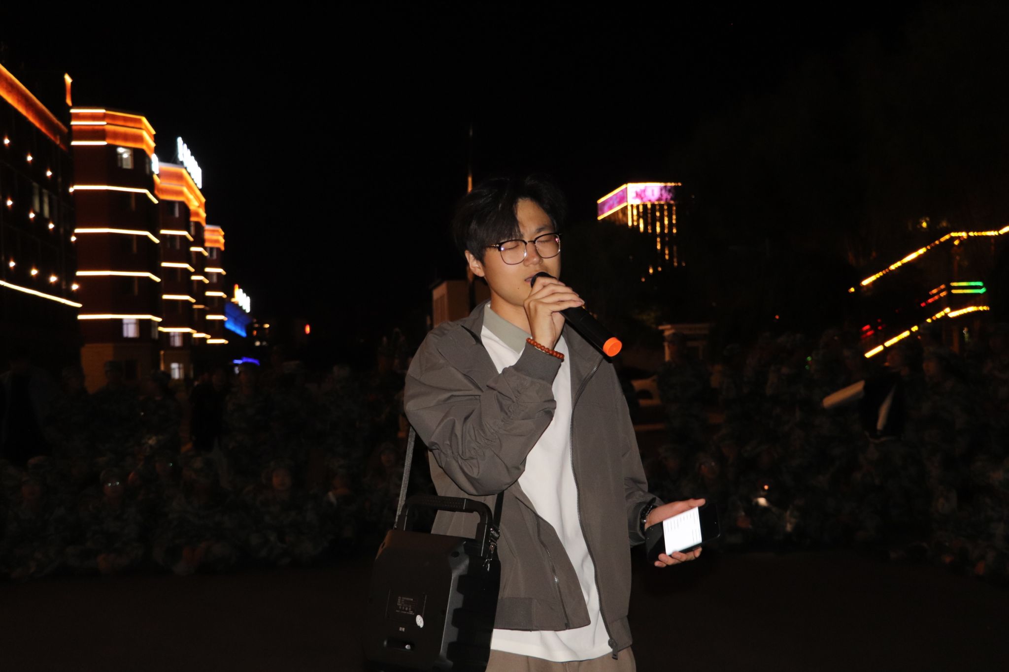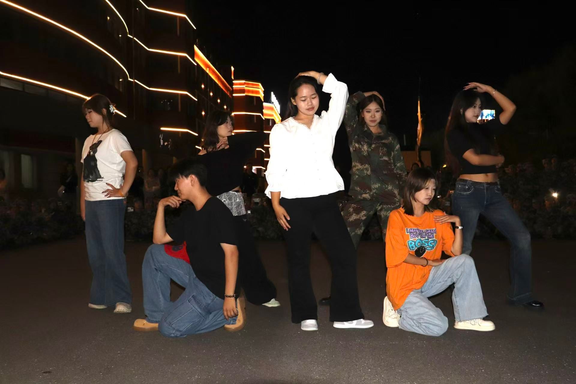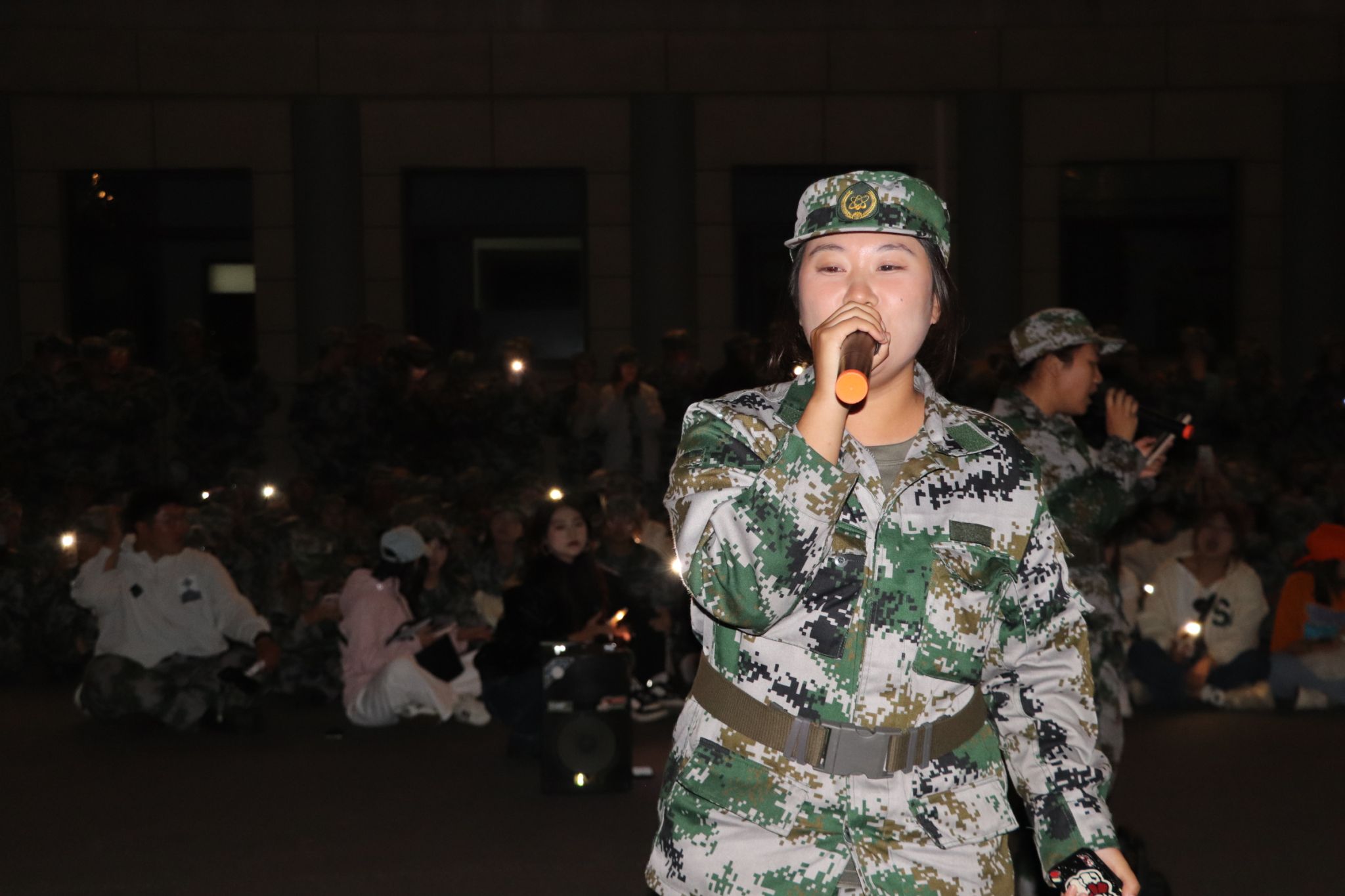 在军训慰问表演中,大一新生同学长学姐一齐登台,带来了歌唱、舞蹈等丰富多彩的节目,用青春活力的演出为高强度训练的新生们送上关怀与鼓励,现场气氛热烈非凡。