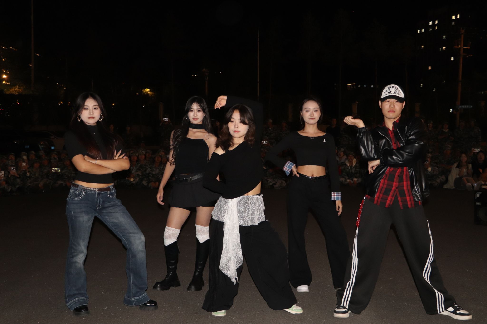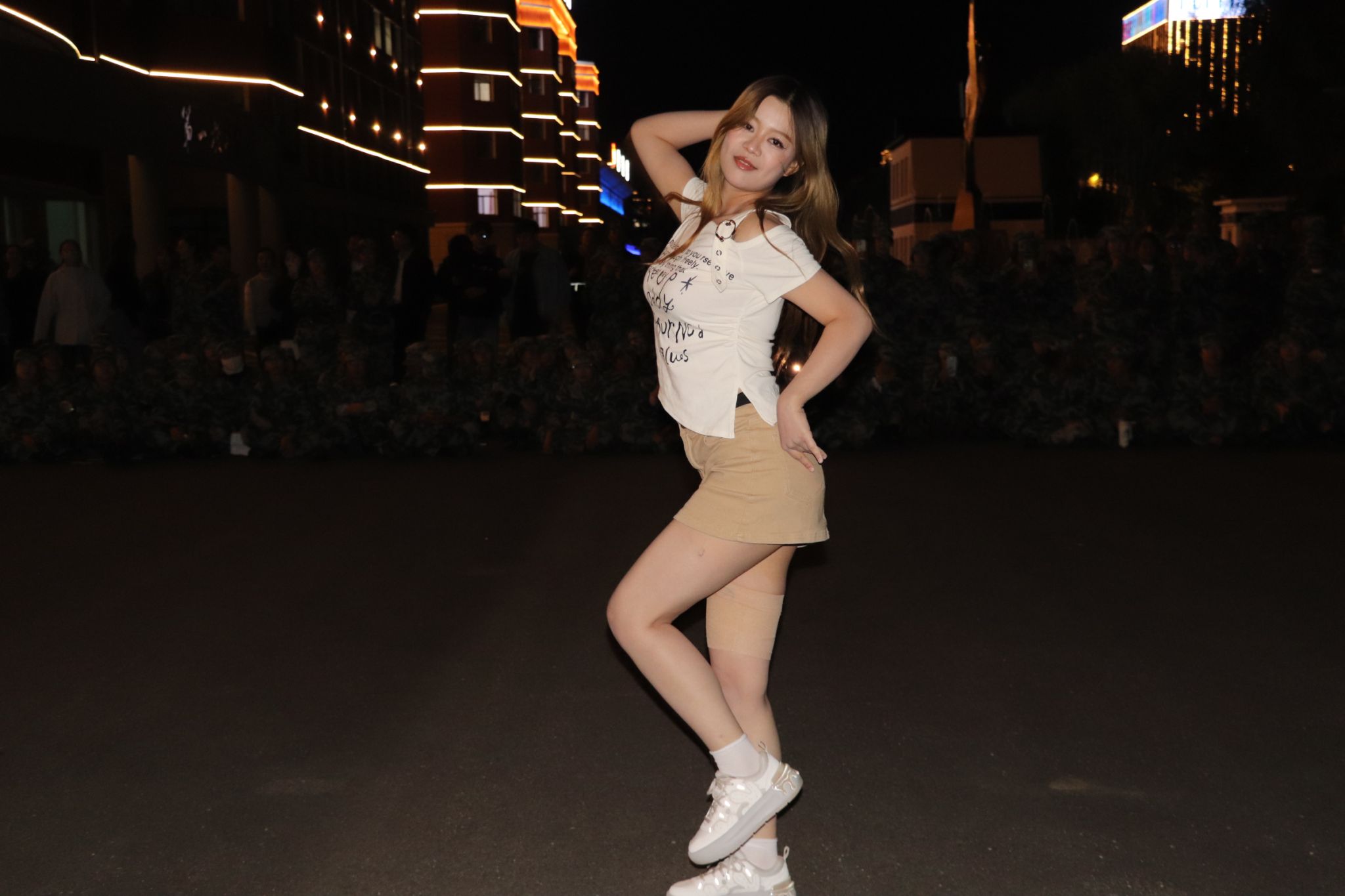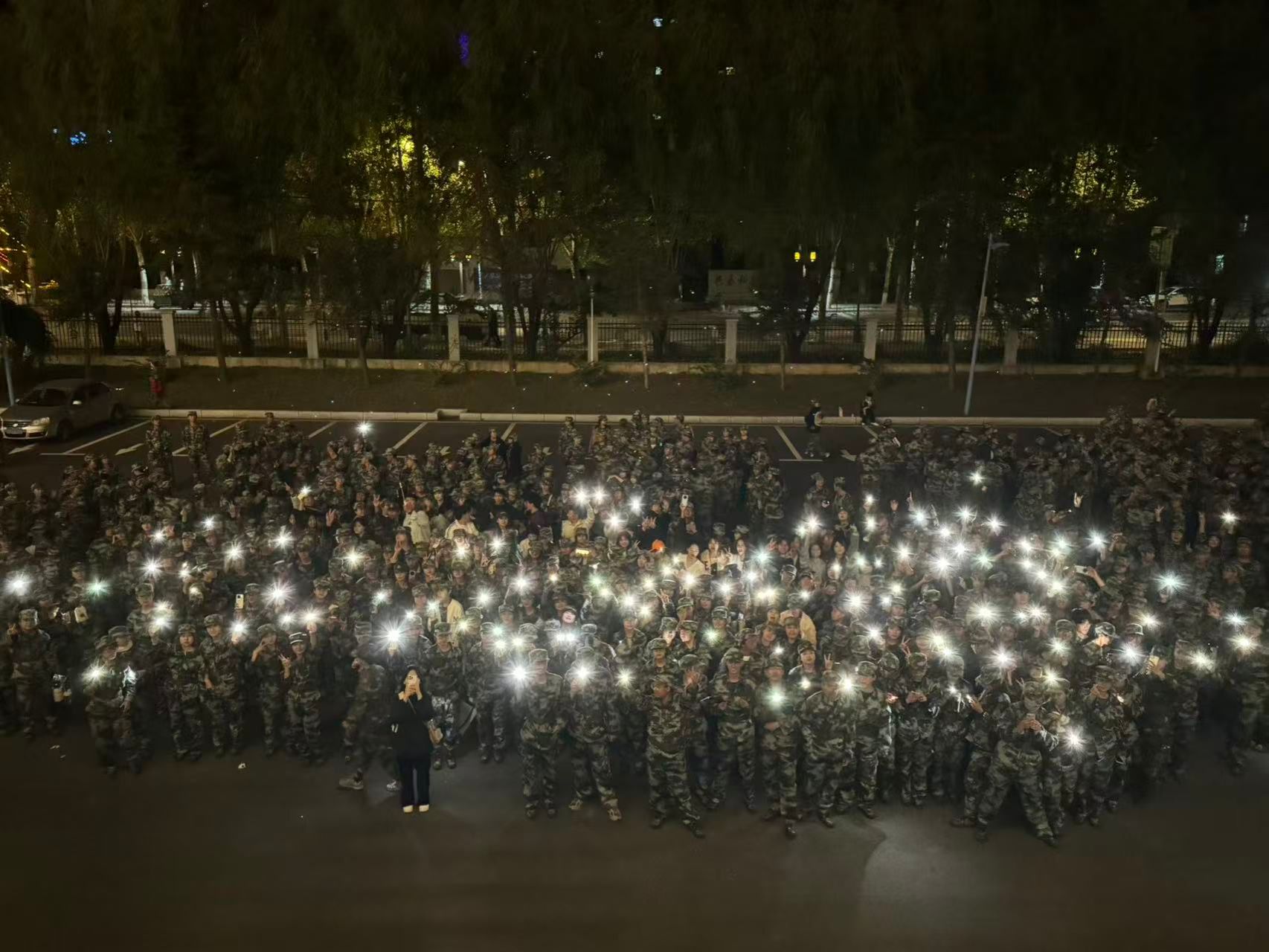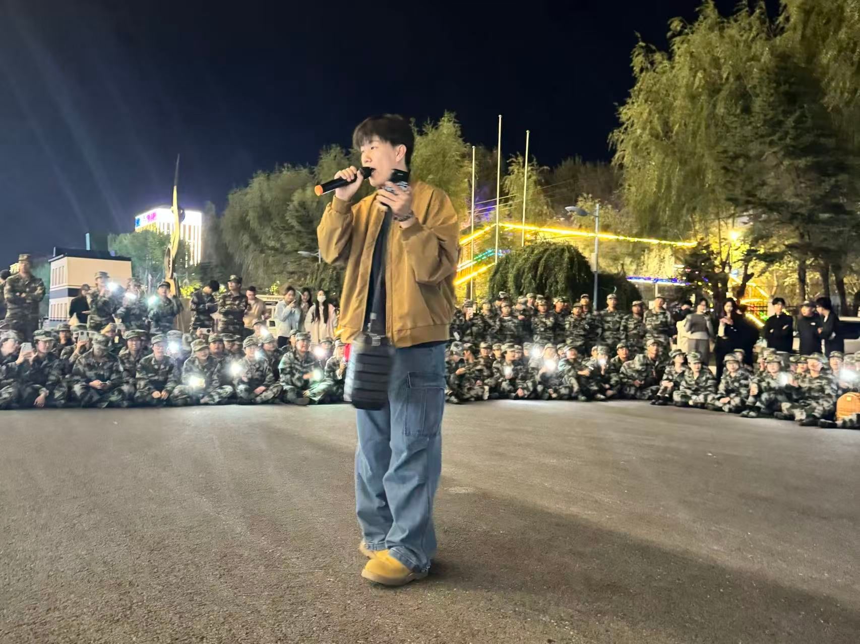 在军训慰问表演中,大一新生同学长学姐一齐登台,带来了歌唱、舞蹈等丰富多彩的节目,用青春活力的演出为高强度训练的新生们送上关怀与鼓励,现场气氛热烈非凡。