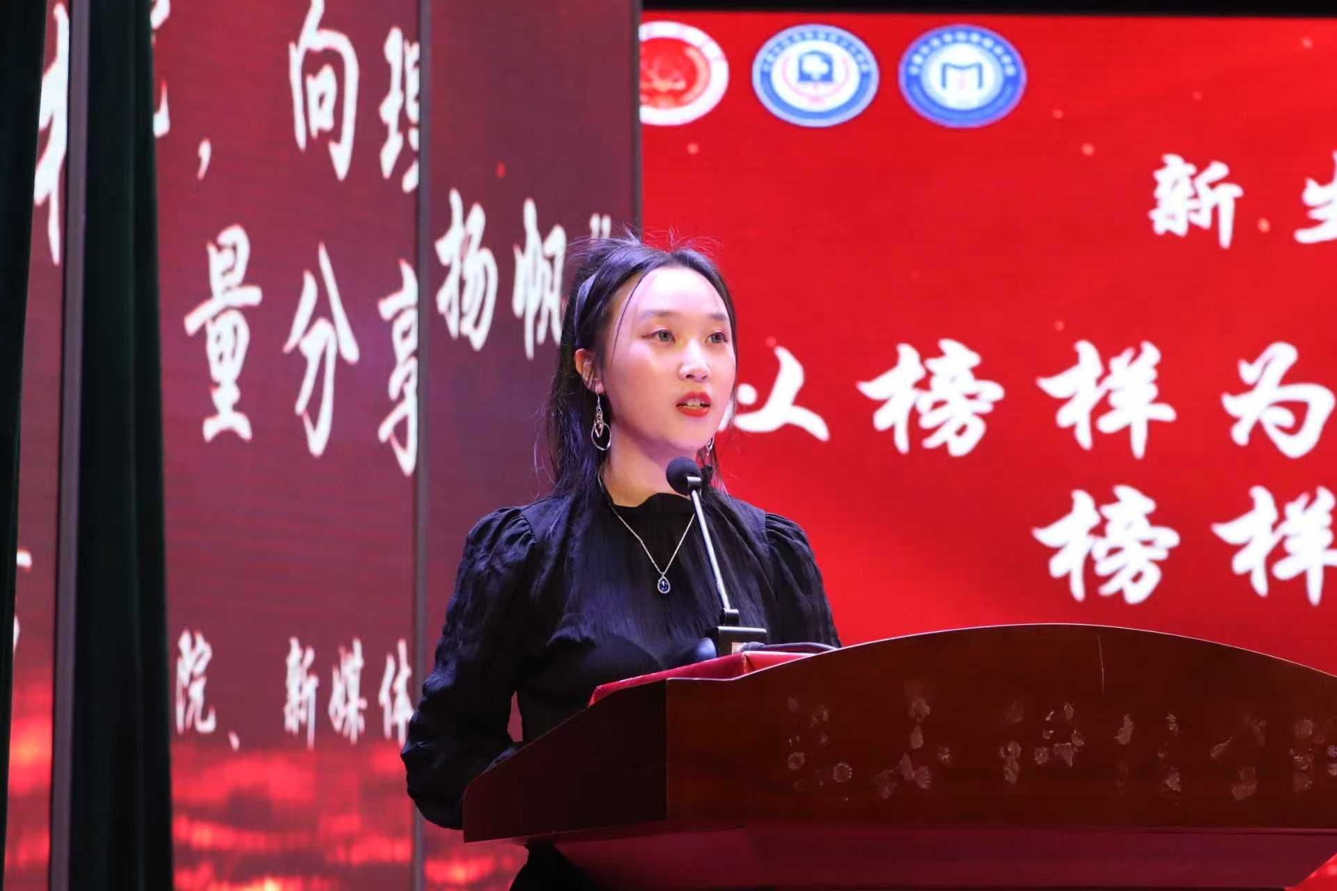 会上,我院优秀学子、中华人民共和国第三届职业技能大赛吉林省金牌获得者陈俪夫作为主讲嘉宾,结合自身成长与奋斗历程,为新生带来了一场内容翔实、启发性强的精彩分享。她从专业学习方法、实践能力提升、目标规划制定等多个维度切入,以真实案例生动讲述了自己从迷茫走向坚定、从积累实现突破的成长路径,鼓励新生珍惜大学时光,既要深耕专业,也要勇于探索,在挫折中磨砺自我,在坚持中收获成长。她真挚的讲述与积极进取的精神风貌,赢得了现场阵阵掌声。