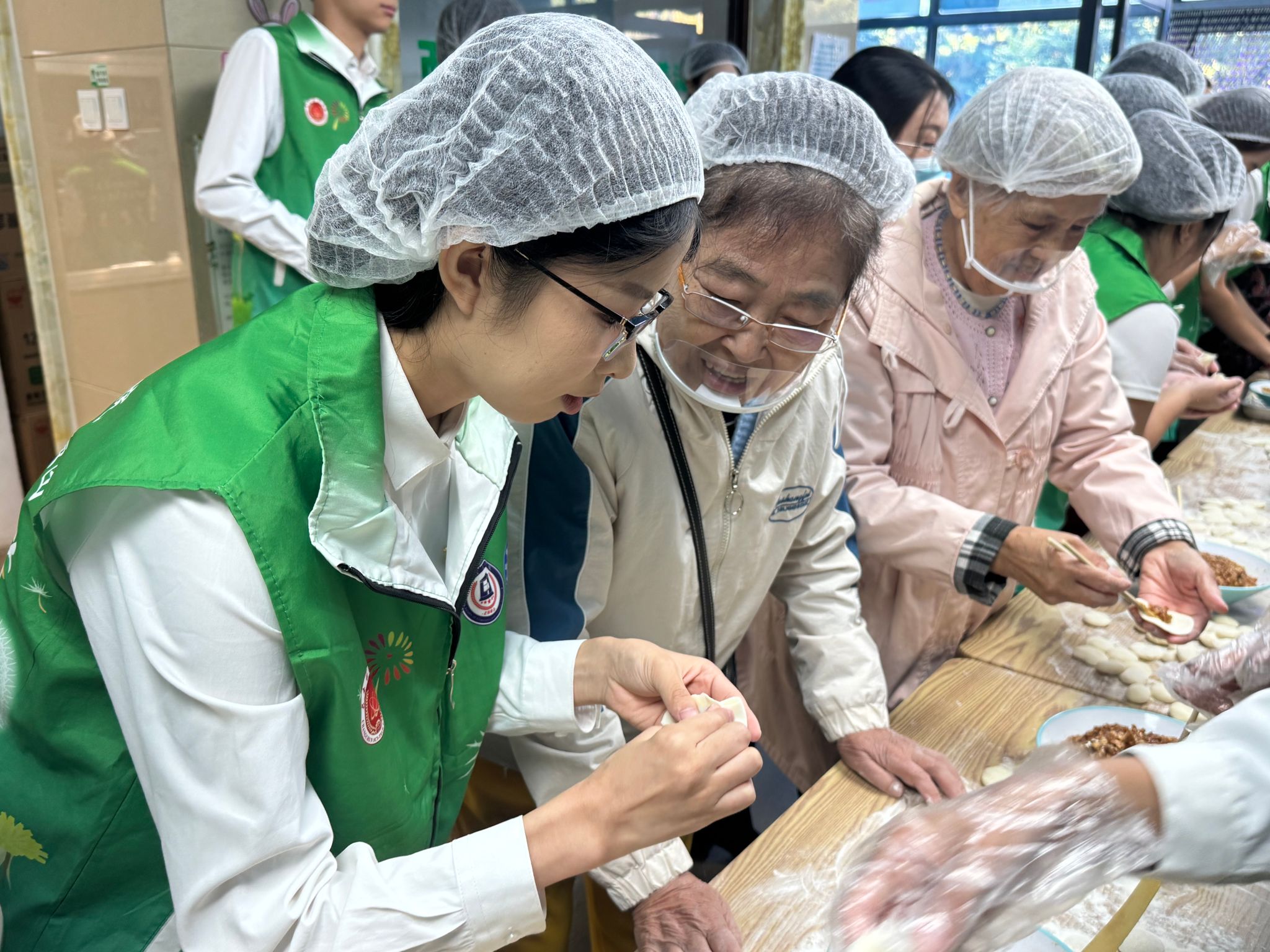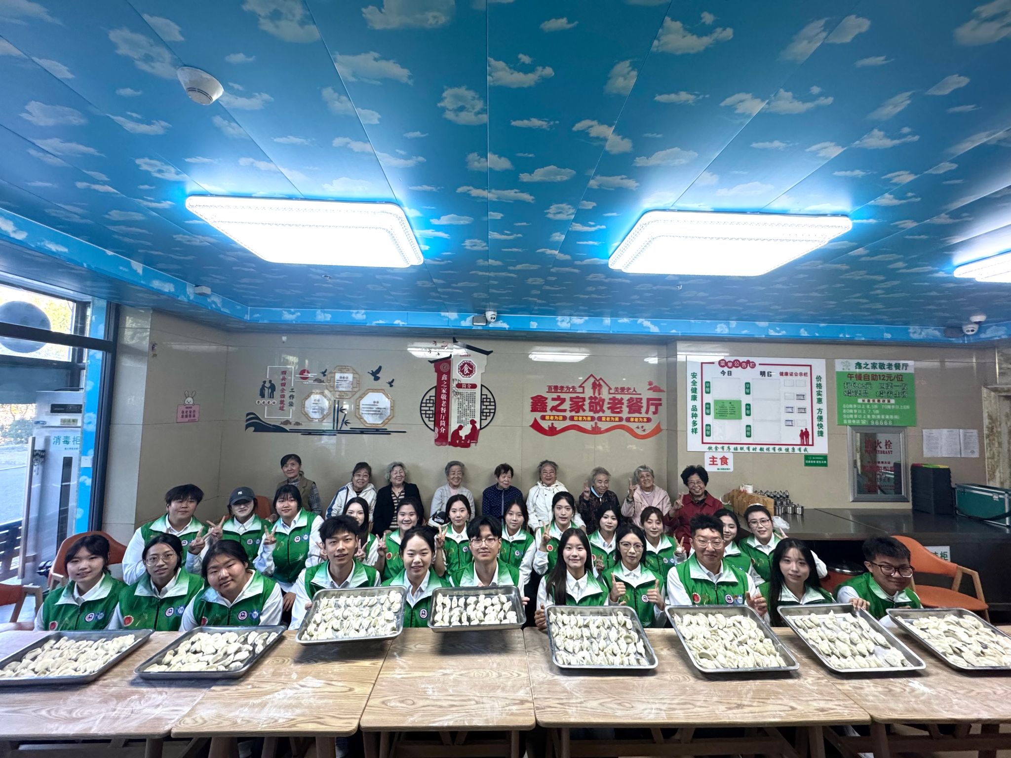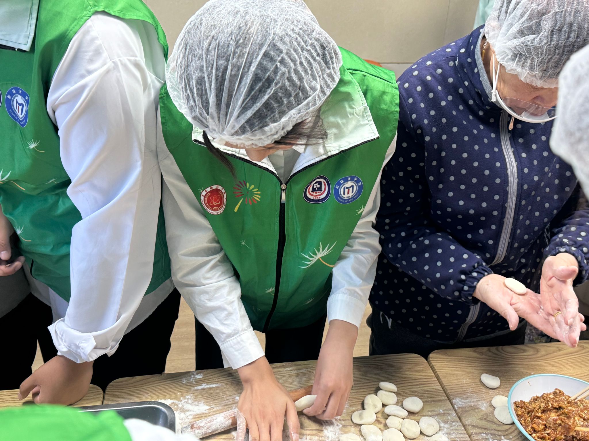 表演结束后,同学们与老人围坐一堂包饺子,在“一折一捏”间学习传统技艺,感悟生活哲学。形态各异的饺子承载着真挚关怀,更传递着跨越年龄的温暖与真情。