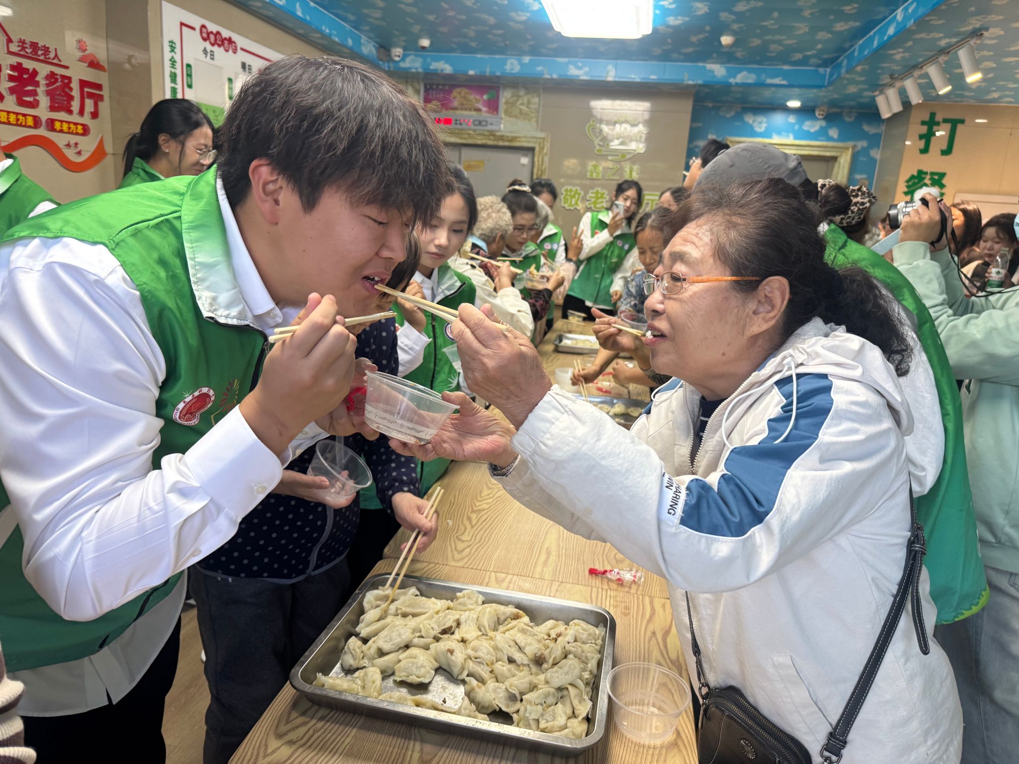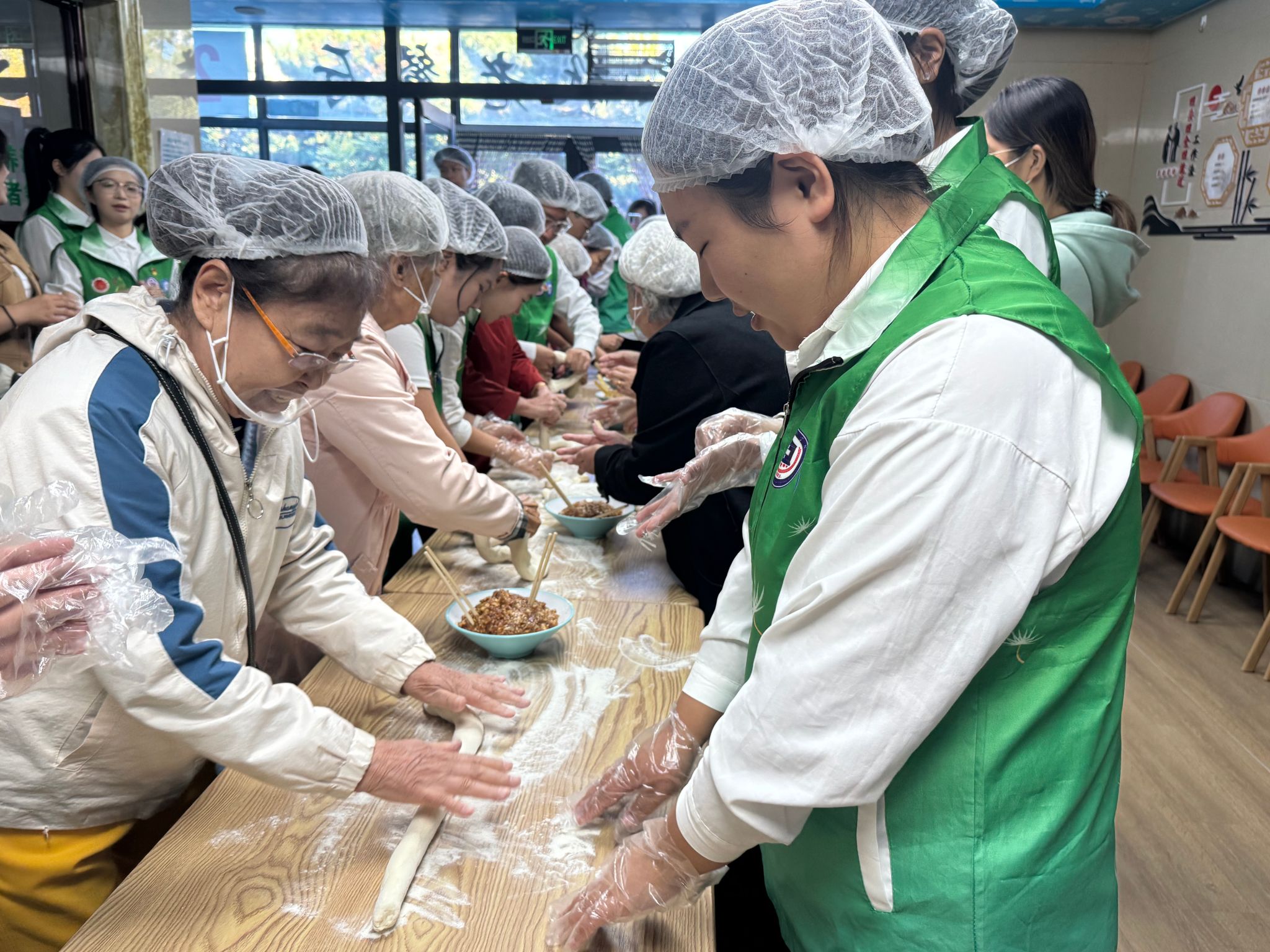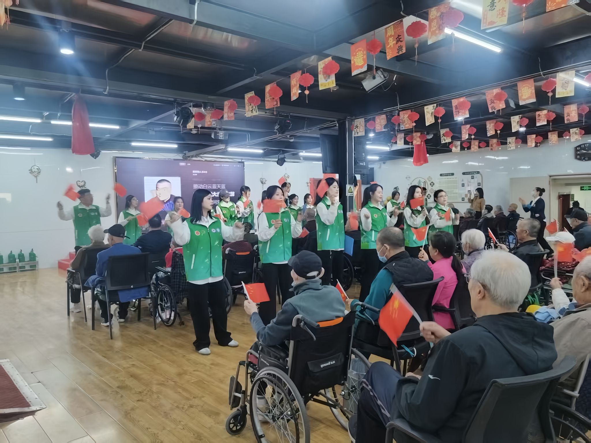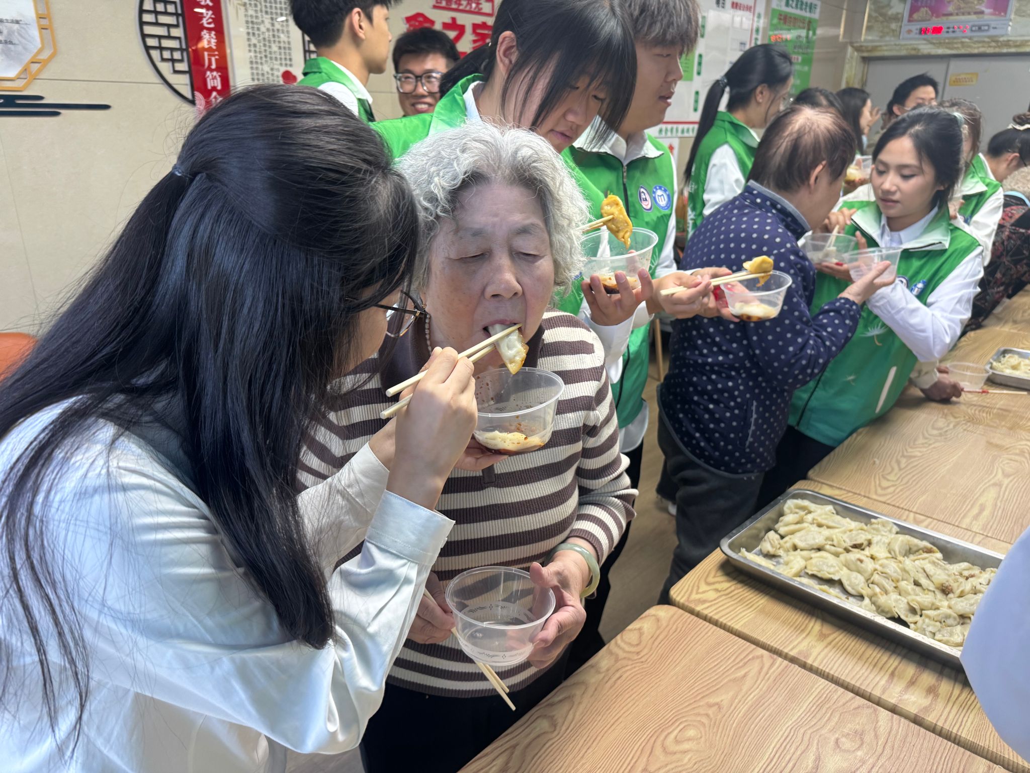在开展短视频创作的同时,我院蒲公英筑梦公益团前往鑫夕阳养老院开展慰问活动,将专业实践与社会服务深度融合。志愿者们发挥专业特长,为老人们表演了歌曲、舞蹈、朗诵等文艺节目。当《我和我的祖国》旋律响起时,老人们眼含热泪与志愿者齐声合唱,场面温馨感人。表演结束后,同学们还与老人一起包饺子,在亲密互动中传递温暖关怀,这些动人场景也成为“幸福双阳”主题创作的生动素材。
