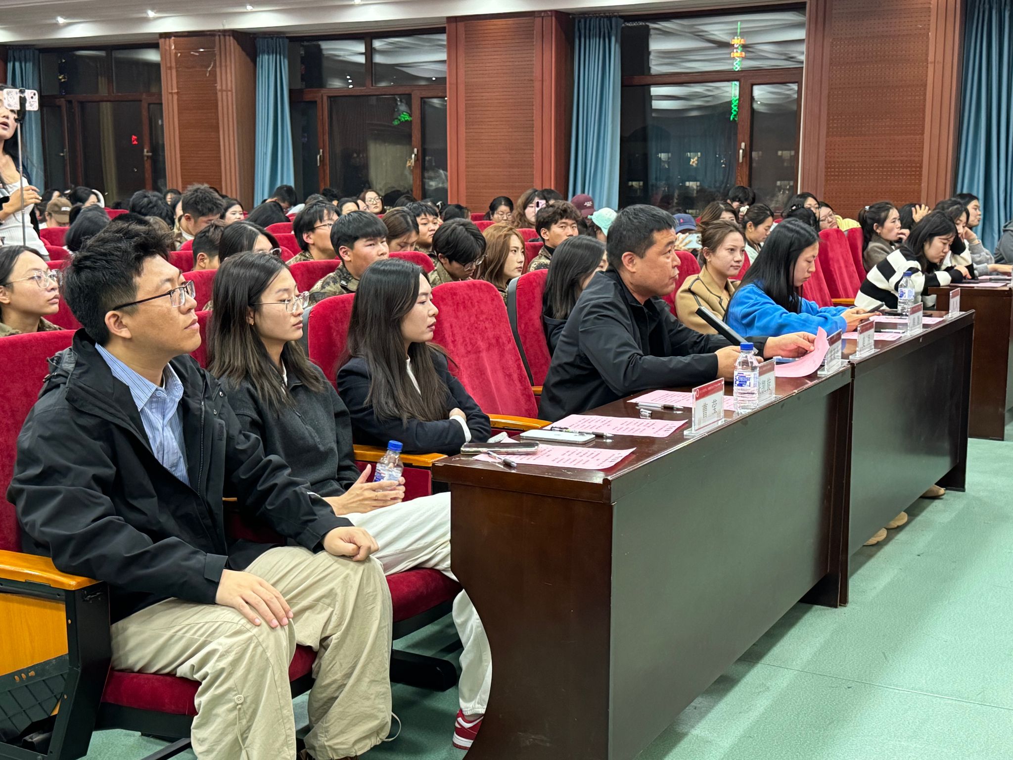 为丰富校园文化生活,营造积极向上、格调高雅的校园艺术氛围,同时挖掘和培养具有艺术潜质的优秀人才,10月13日晚,语言文化学院、新媒体学院在第一教学楼六楼报告厅联合举办“声动青春,语伴歌行”校园歌手大赛。学工办全体教师出席活动,团学组织成员共同参与,现场高潮迭起,涌现出诸多令人难忘的“名场面”。