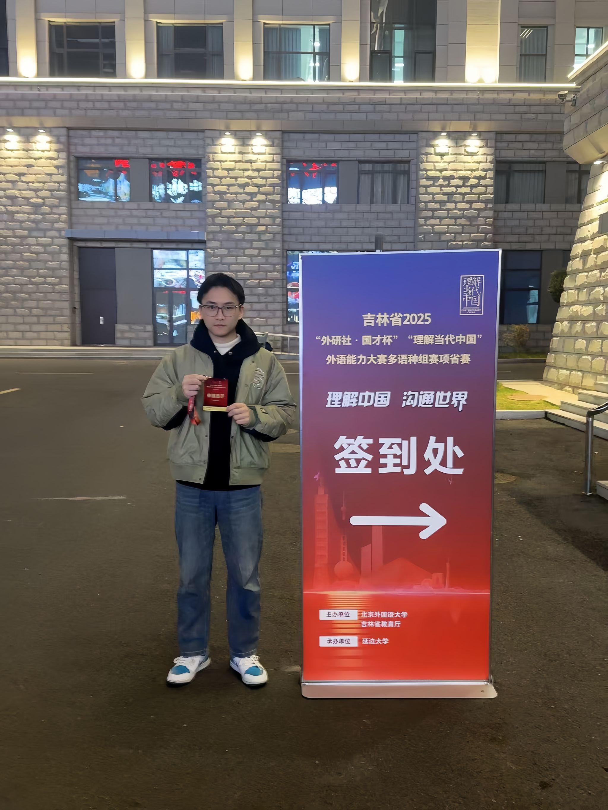 2025年10月25日,2025“外研社·国才杯”“理解当代中国”全国大学生外语能力大赛日语组吉林省省赛在延边大学圆满落幕。语言文化学院、新媒体学院2023级日语专业学生李业东、方楷澄凭借出色表现,荣获本次大赛铜奖,展现出扎实的专业功底与卓越的语言综合能力。