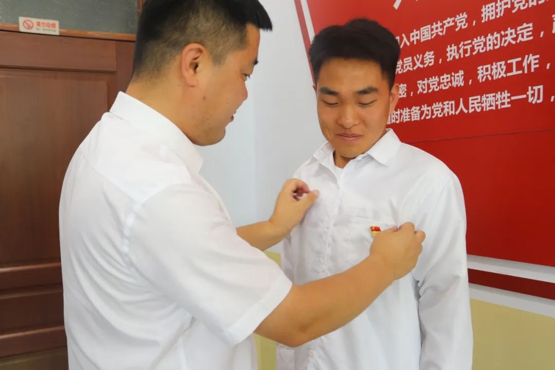 面向中国共产党党旗,新党员举起右手,庄严宣誓,铿锵有力的誓言展现了新党员坚定不移的理想信念,表达了新党员对党的赤诚之心和崇高信仰。