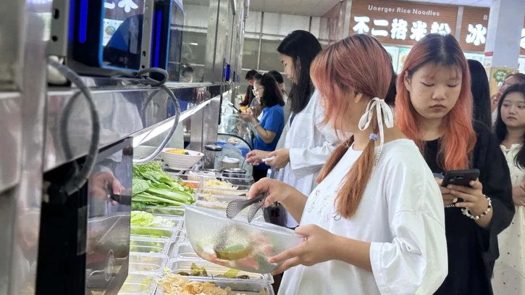 中午,在我院同学的带领下,泰国格乐大学游学团来到我校食堂,品尝中餐,从皮薄馅大的饺子到地地道道的东北麻辣烫,每一道菜都散发着诱人的香气,游学团的学生们围坐在餐桌旁,品鉴着手里的美食,赞不绝口。在享用美食的同时,两校同学也开展了关于饮食文化的交流,他们分享着各自国家的饮食特色和传统,讲述着那些与食物紧密相连的有趣故事。