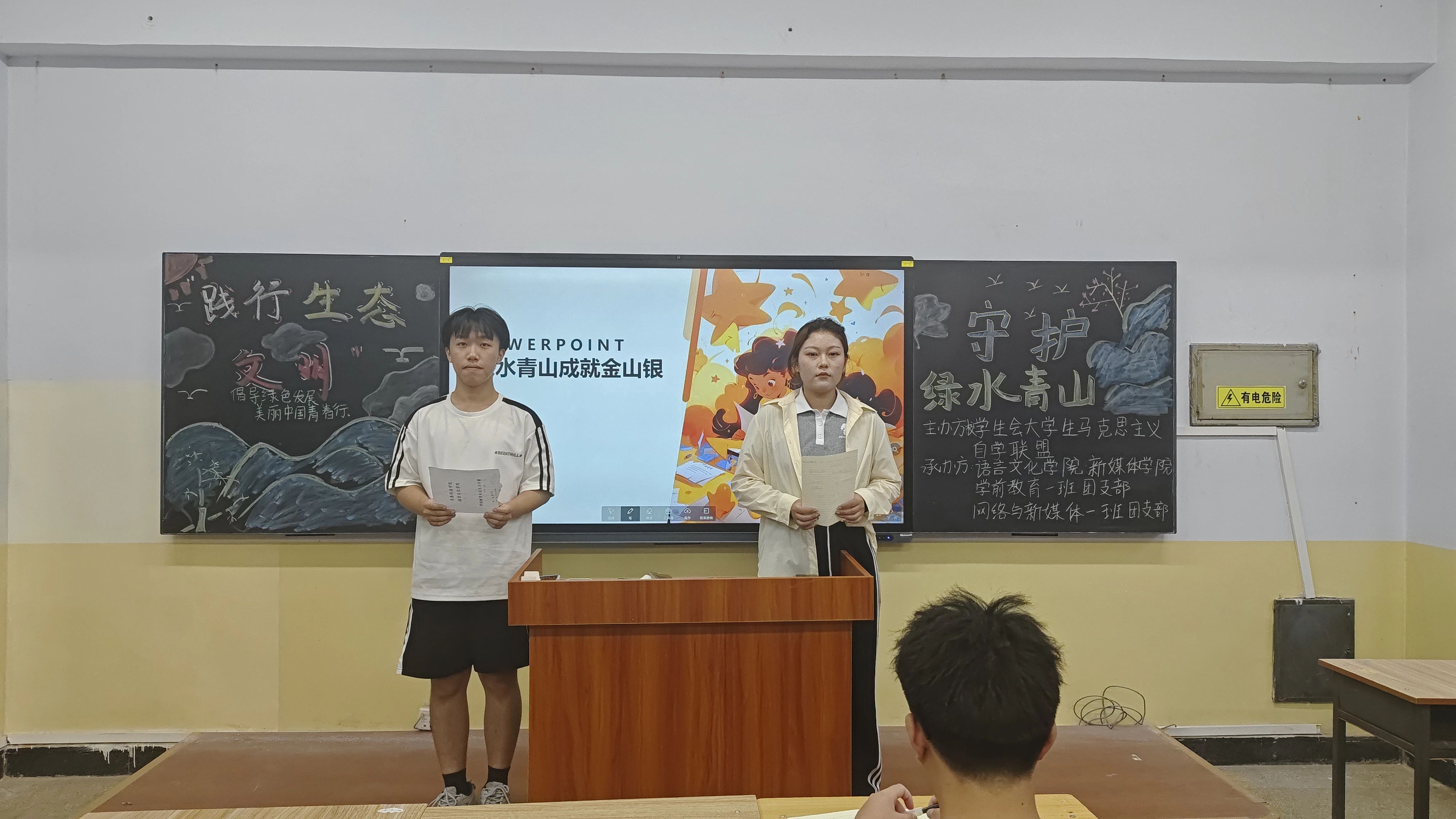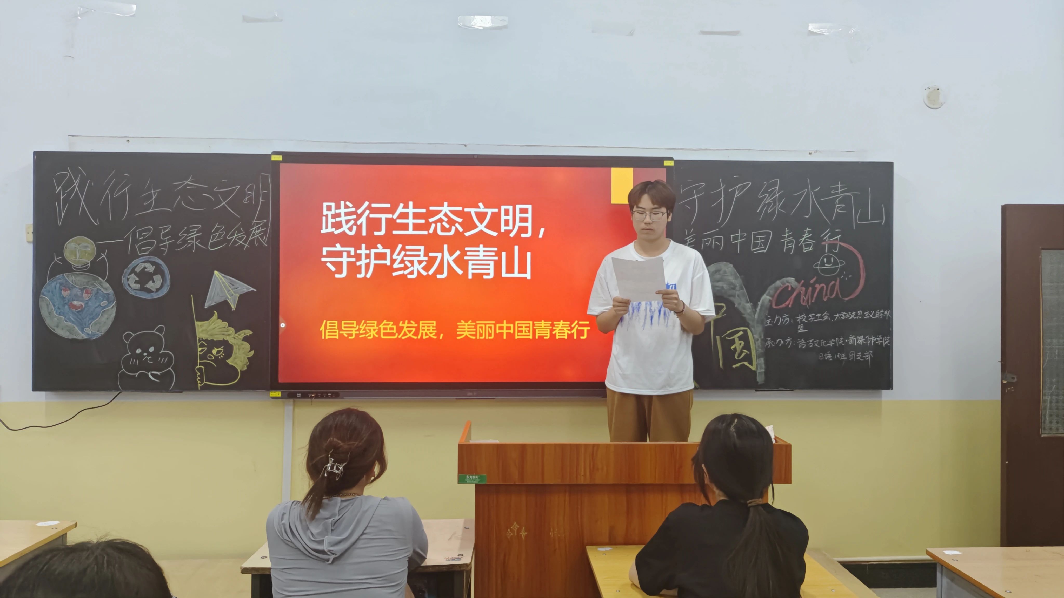 2024年6月16日18:30,语言文化学院·新媒体学院于第一教学楼以班级为单位召开“倡导绿色发展,美丽中国青春行”主题团会,我院2023级全体学生参加。
