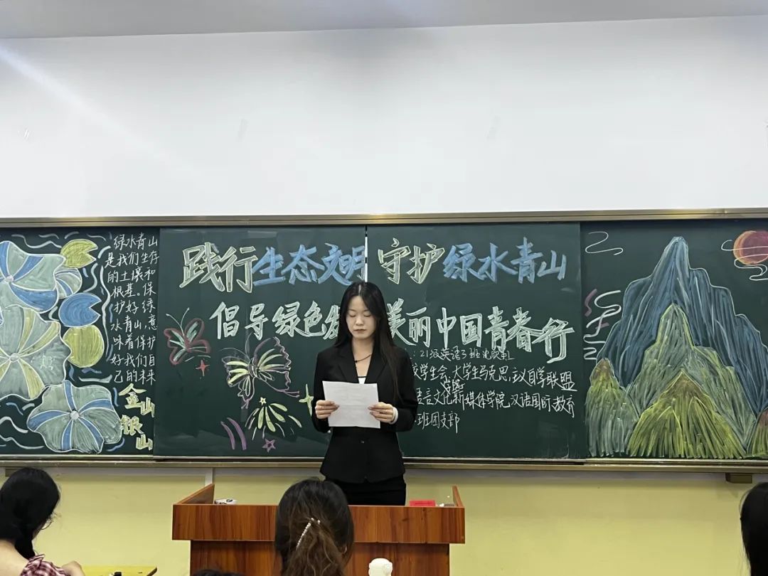 团会伊始,各班主持人以绿色发展为引领,通过板报、PPT、视频等方式,引导同学们树立正确的生态观和发展观,做绿色家园的“保护者”和“践行者”,在日常生活中积极践行绿色生产生活方式,并鼓励同学们以实际行动助力全面推进人与自然和谐共生。