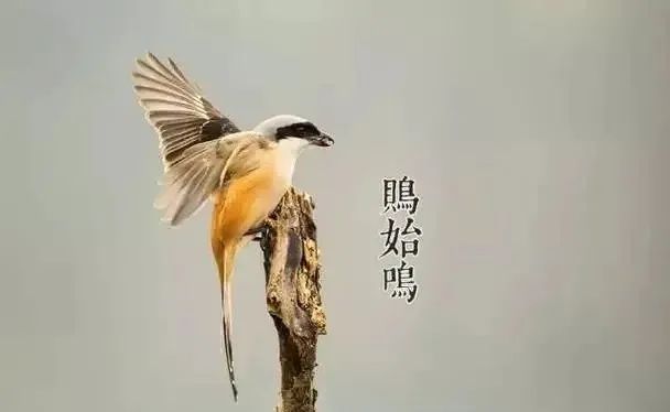 鹏始鸣的意思是喜阴的伯劳鸟开始在枝头出现,并且感阴而鸣。