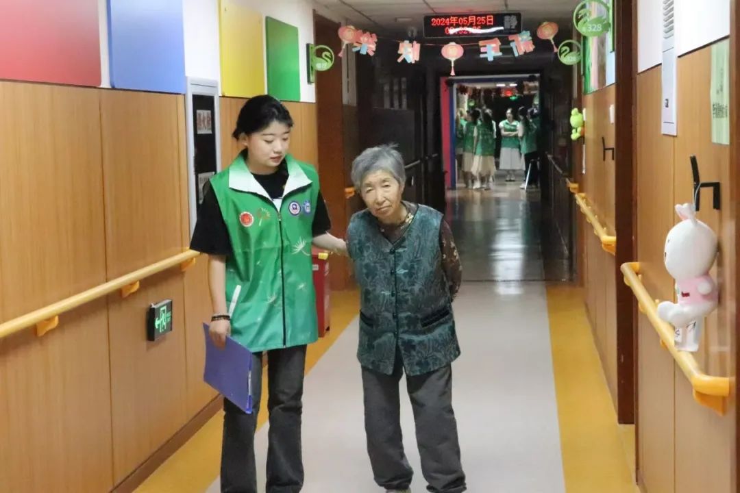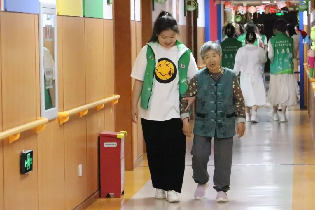 老人们在我院志愿者的搀扶下