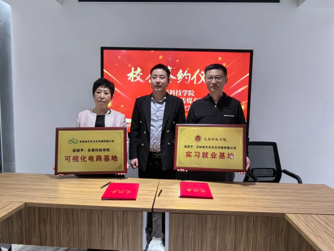 最后,长春科技学院与吉林省天禾文化传媒有限公司共同签署校合作协议。长春科技学院授予园区“长春科技学院实习就业基地”,与此同时,吉林省天禾文化传媒有限公司在长春科技学院设置了“可视化电商基地”。双方将坚持资源共享、优势互补、合作共赢的原则,为学生实习、实训以及就业提供更广阔的平台,同时也为地方经济发展增添动力。