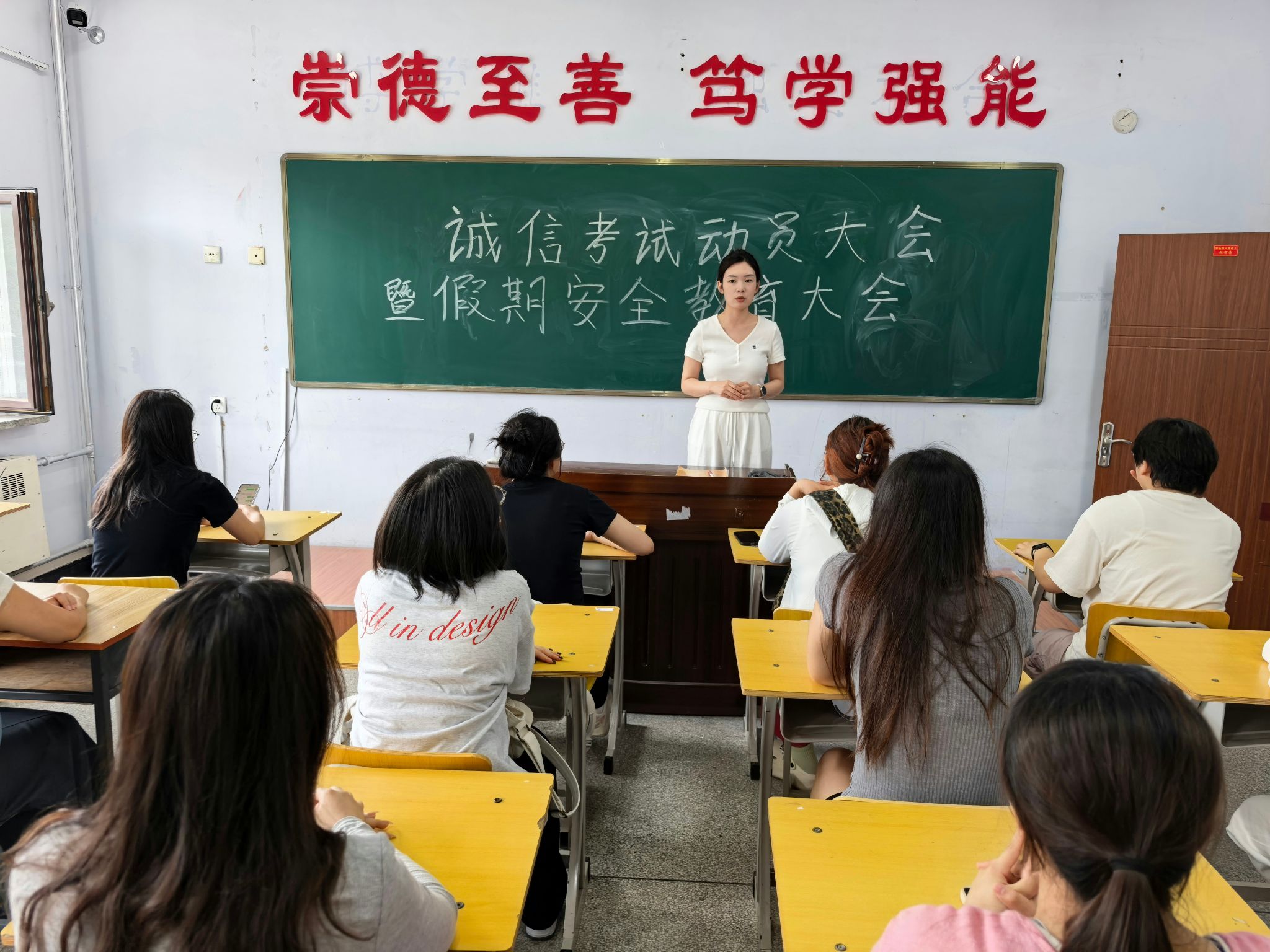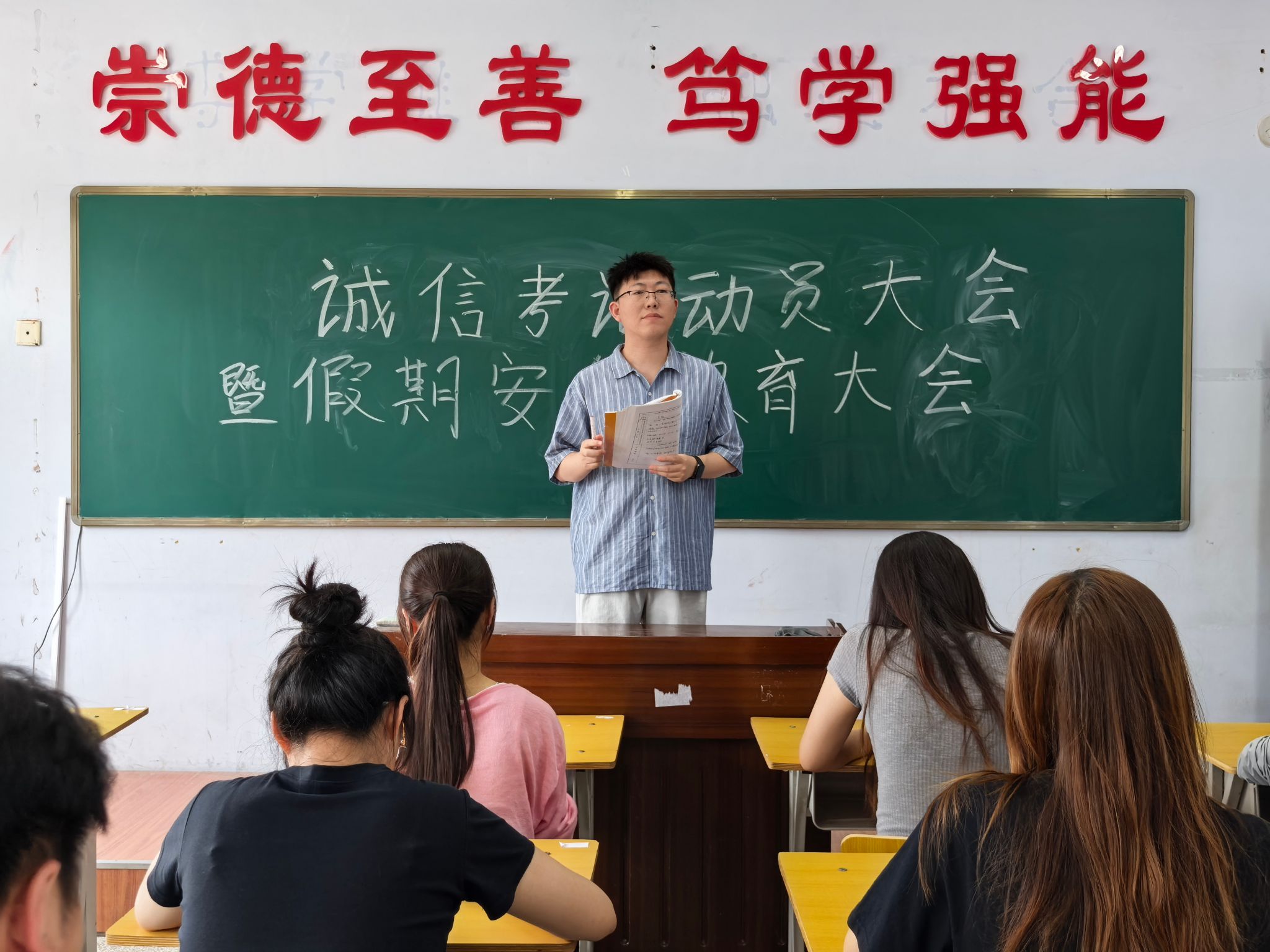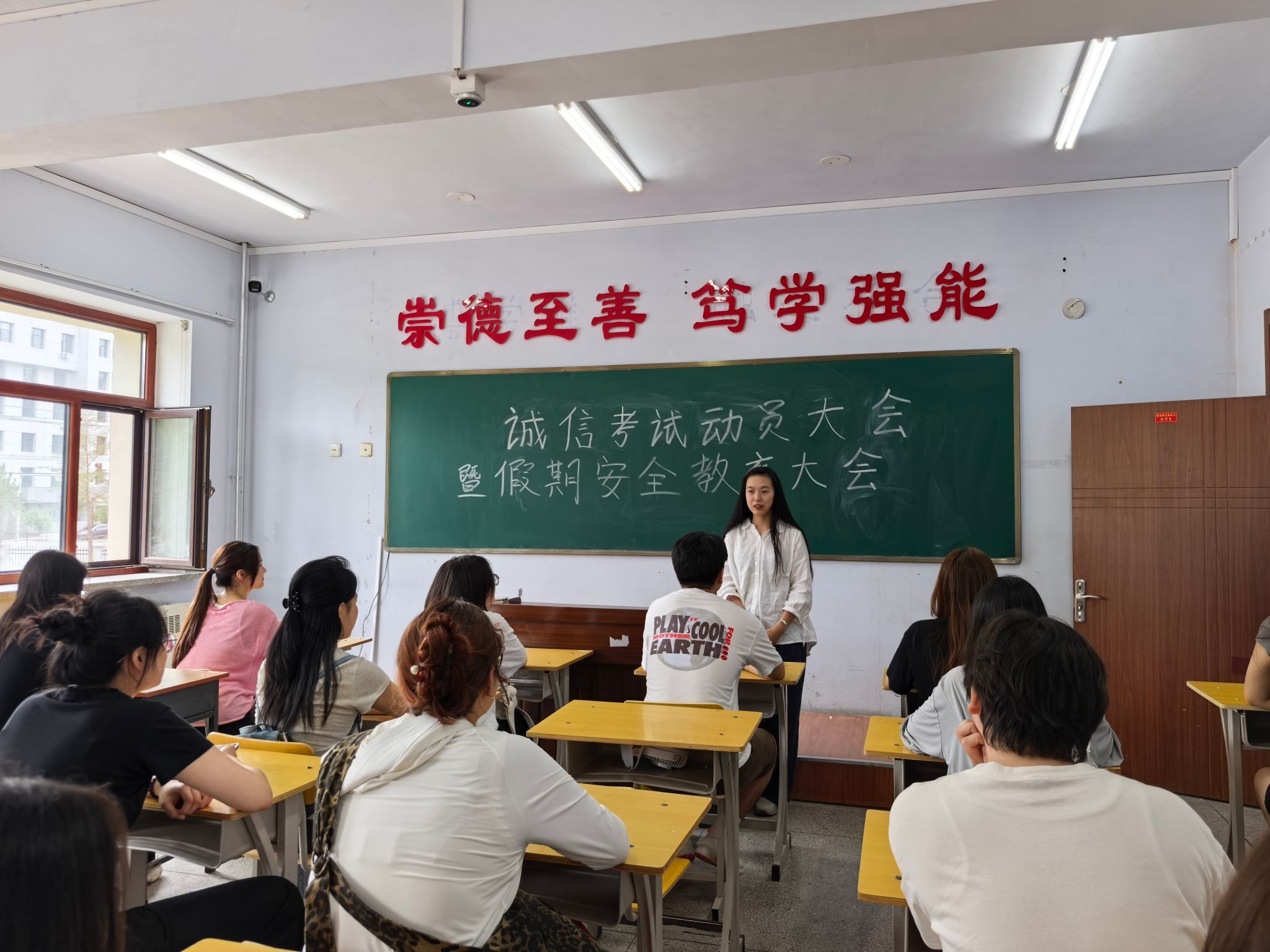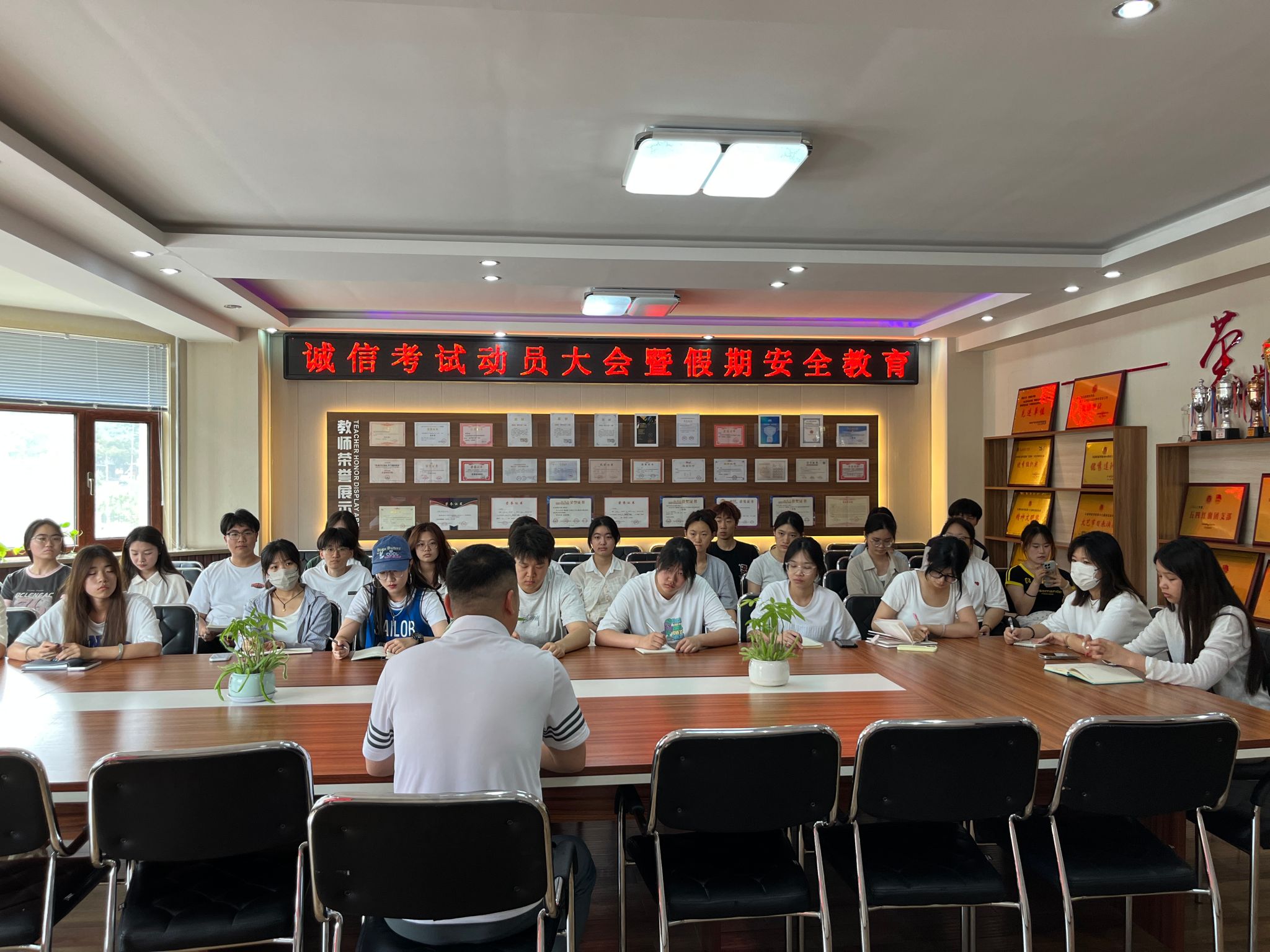 经过一学期紧张且充实的校园生活,同学们即将迎来憧憬已久的暑期,但同时也必须完成期末考试的考验。为严肃考风考纪,增强学生假期安全意识,语言文化学院、新媒体学院于第一教学楼召开诚信考试动员大会暨假期安全教育大会。