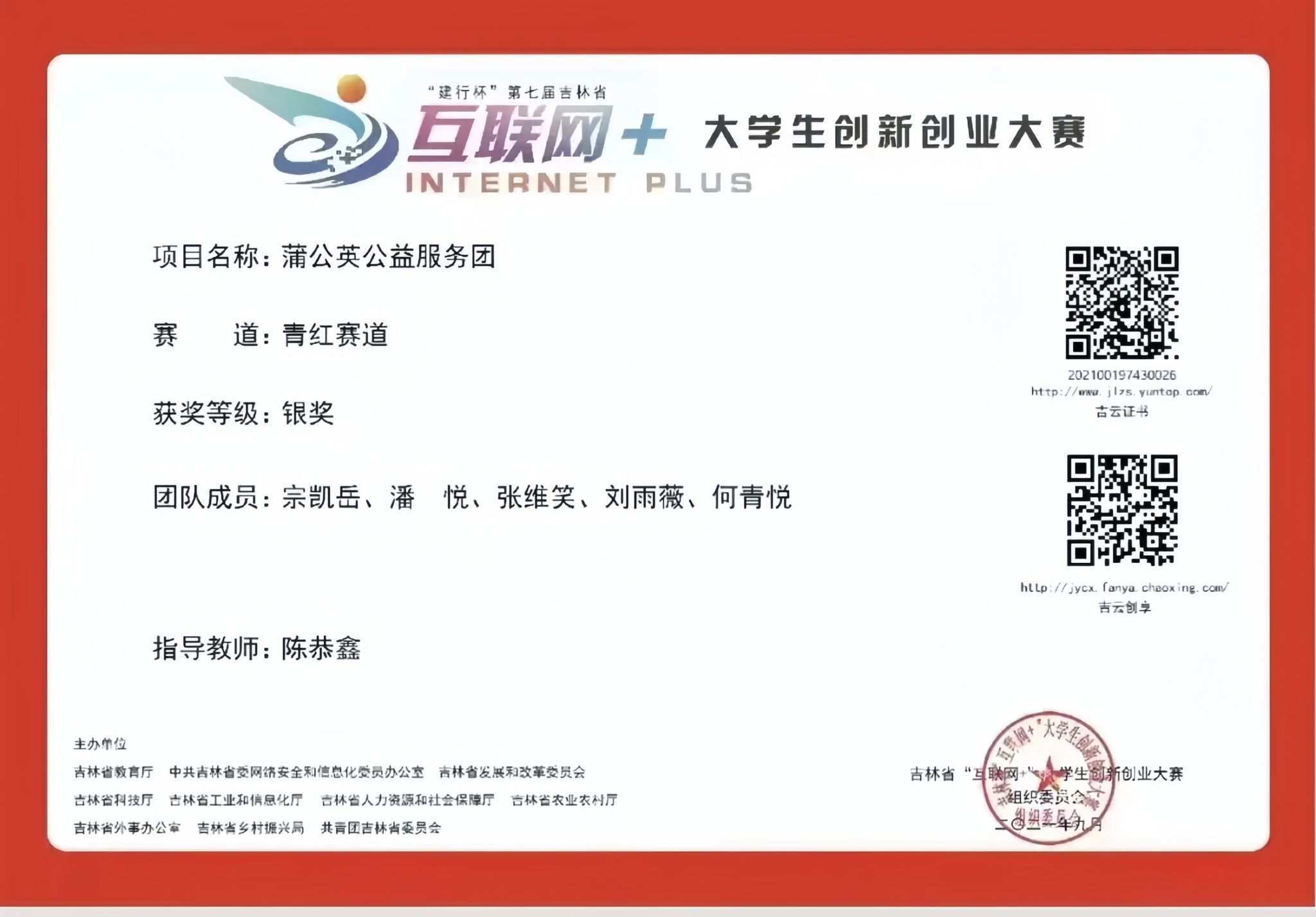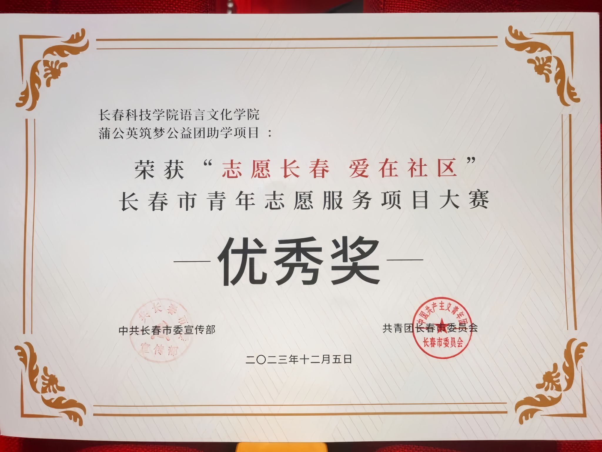 蒲公英筑梦公益团曾获大学生马克思主义自学组织联盟社会实践活动暨吉林省大学生暑期“三下乡”活动优秀团队称号、第十二届“挑战杯”吉林省大学生创业计划竞赛二等奖、“建行杯”第七届吉林省互联网+大学生创新创业大赛银奖、“挑战杯”吉林省大学生创业计划竞赛一等奖、全国大学生“返家乡”社会实践专项活动高校合作基地、“建行杯”第八届吉林省互联网+大学生创新创业大赛银奖、全国大学生2022年暑期“返家乡”社会实践专项活动优秀宣传高校、“志愿长春,爱在社区”长春市青年志愿服务项目大赛优秀奖、“弘扬中国精神,展现时代风貌”全国大学生2023年暑假“返家乡”一起云支教社会实践活动优秀宣传高校、“挑战杯”吉林省大学生创业计划竞赛荣获铜奖、吉林省“挑战杯”红色专项赛中荣获二等奖、首届青领杯大学生创新创业大赛吉林赛区荣获优秀奖。
