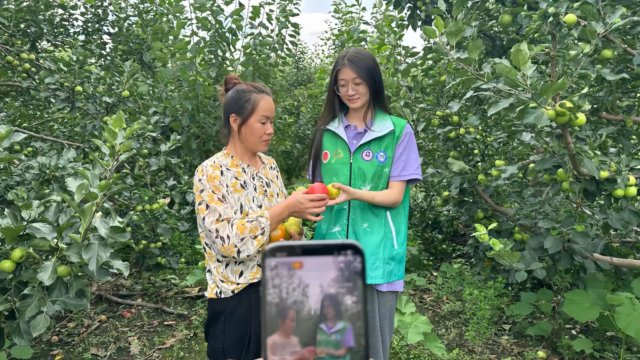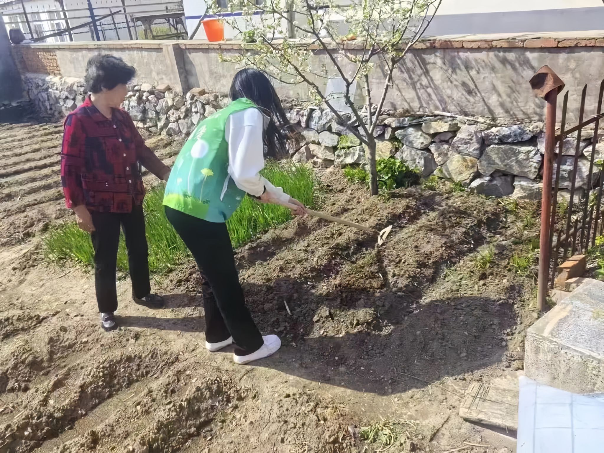 2024年暑期,志愿者们身穿绿马甲,在农户的指导下积极参与农作物的采摘和分拣。在菜地里,志愿者们动作麻利地收割蔬菜,帮助农户采摘早熟作物,同时剔除残次蔬菜以提高成活概率。此外,志愿者们还协助农户为农田灌溉,用农户家的水瓢为干涸的土地送去滋润,切实为农户减轻了劳作负担。