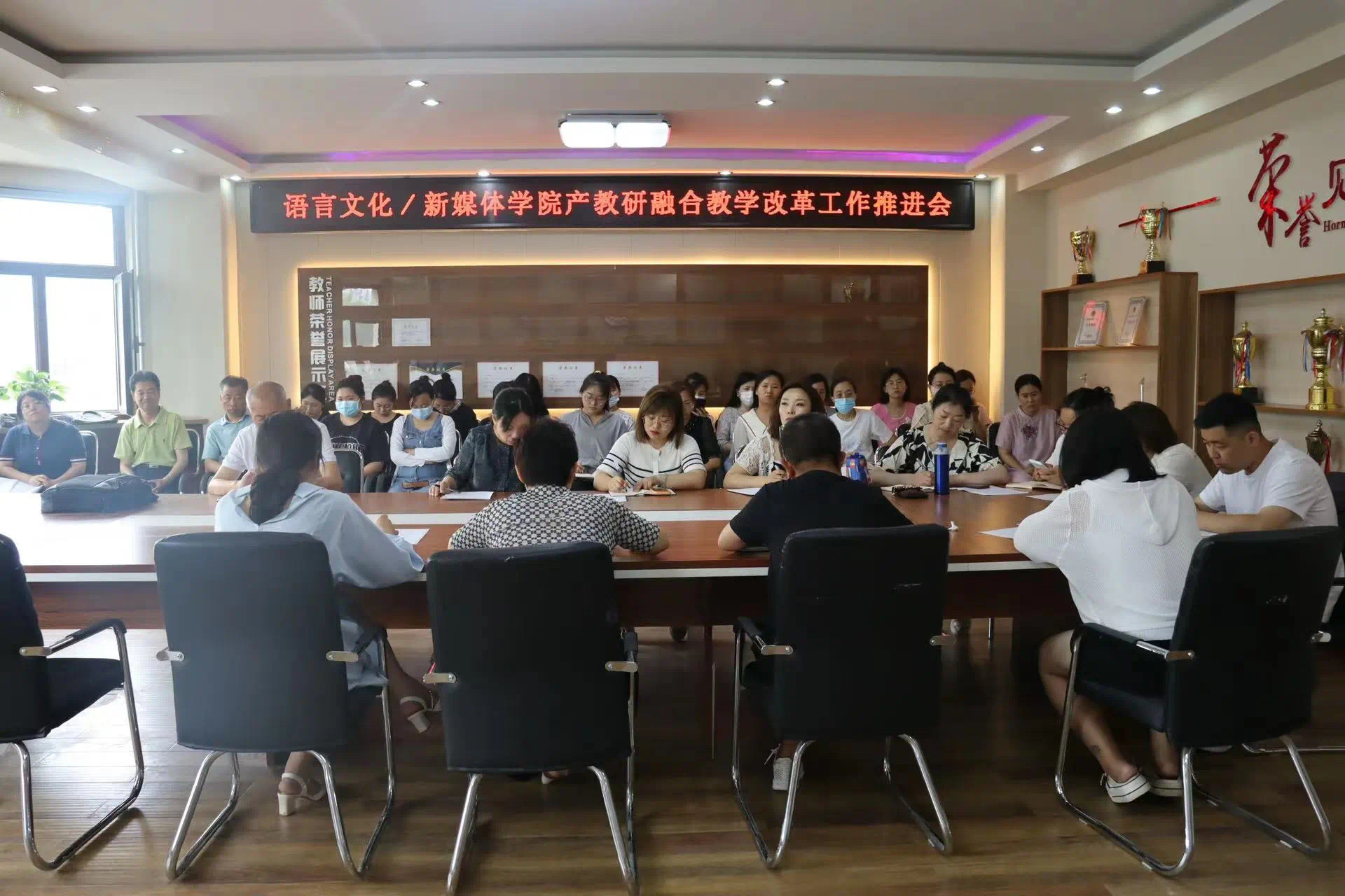 2023年6月30日12:00,语言文化学院于第一教学楼217召开产教研融合教学改革工作推进会,此次会议由语言文化学院副院长王巍主持,语言文化学院院长,副院长林罡,学工办主任、分团委书记张贺亮及全体教师参加。