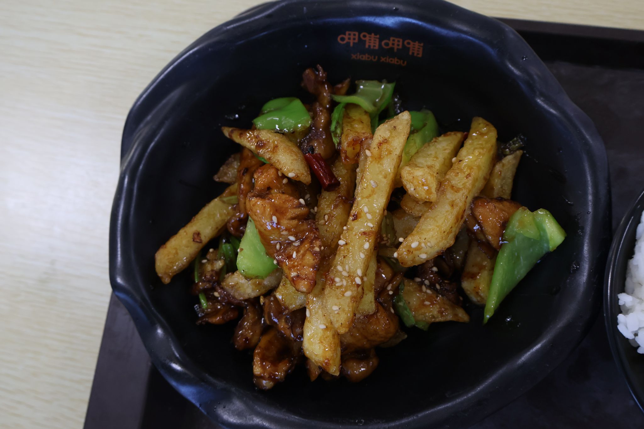 椒香薯条鸡刚上桌,浓郁的香味便扑面而来,红润油亮的鸡块裹着晶莹的酱汁,让人食欲大动。金黄酥脆的薯条点缀其间,咬下去发出"咔嚓"脆响,土豆的醇香立刻在唇齿间绽放。花椒的辛香与鸡肉的鲜美完美融合,每一口都让人欲罢不能。