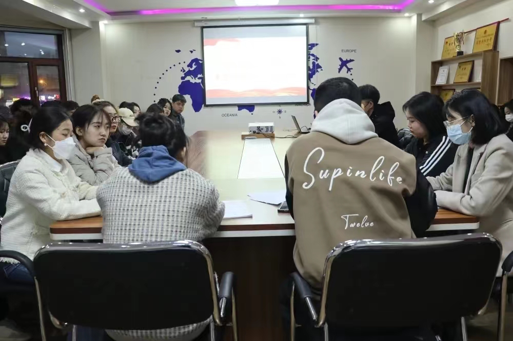 2023年4月20日18:30,语言文化学院于第一教学楼217会议室召开春季运动会筹备工作会议暨团学组织第六次例会。此次会议由学工办主任、分团委书记张贺亮主持,2022级辅导员曹莹、韩墨以及全体团学组织工作人员参加了此次会议。